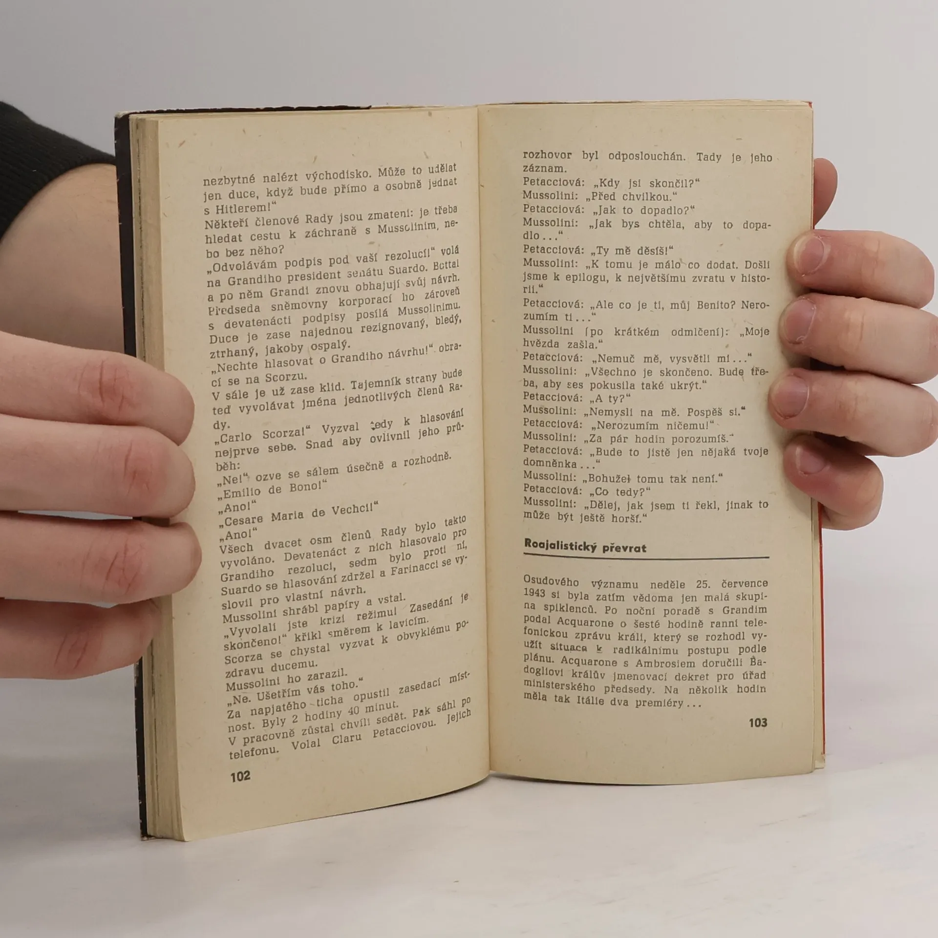 Hlavní část reportáže líčí vzestup a pád diktátora Mussoliniho. Dvojí zajetí, jeho únos německými výsadkáři, převrat v Římě, revoluce v zemi, poslední týdny fašistické republiky, až k výstřelům samopalu, který jménem Výboru národního osvobození účtuje dne 28.4.1945 s diktátorem.
