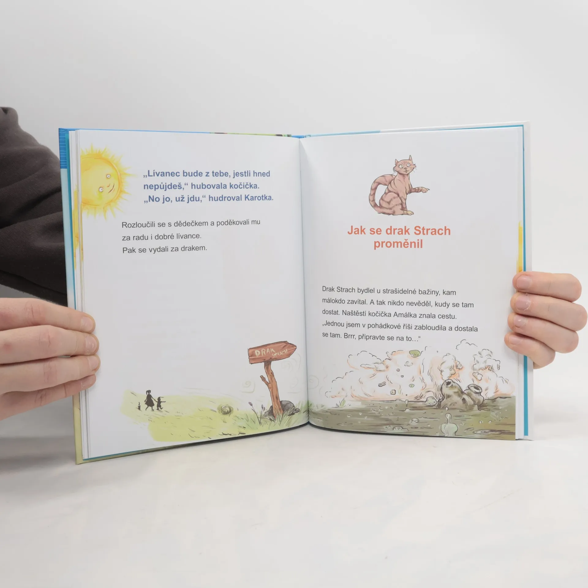 Čarodějnický učeň Matěj tomu dal. Ve vzteku pronesl kouzelné zaklínadlo a na smrku teď rostou meruňky, okurky jsou růžové a jahody modré. Skřítek Karotka se proto vypraví do světa lidí hledat pomoc. Dokáží holčička Janička spolu s kočkou Amálkou Matěje najít a přesvědčit ho, aby kouzlo zrušil? Knížka pro společné čtení dětí a rodičů. Část textu je přizpůsobena začínajícím čtenářům. Příběh je doplněný velkým množstvím krásných ilustrací.