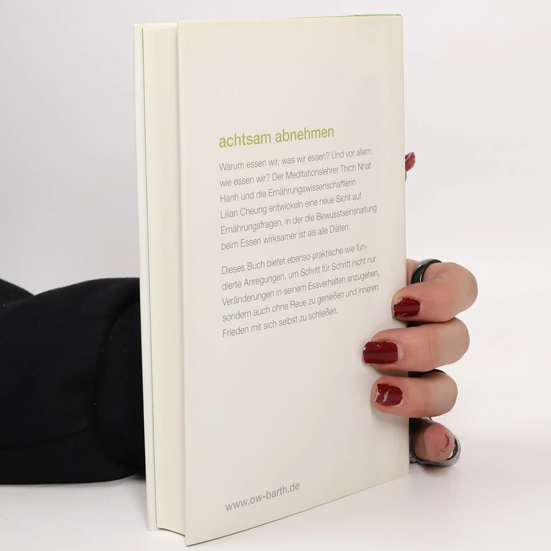 Wie kann man bewusst leben und ein gesundes Gewicht erlangen? Der Meditationslehrer Thich Nhat Hanh und die Ernährungswissenschaftlerin Dr. Lilian Cheung entwickeln eine neue Sicht auf das Thema Ernährung, in der die Bewusstseinshaltung beim Essen wirksamer ist als alle Kuren. Sie kombinieren zeitlose Prinzipien der buddhistischen Lehre mit modernen wissenschaftlichen Erkenntnissen. Mit vielen praktischen Anregungen, wie man aus alten Gewohnheiten aussteigt, auf seine natürlichen Bedürfnisse achtet, achtsamer genießt und damit den Weg heraus aus der üblichen Diätenfalle findet.