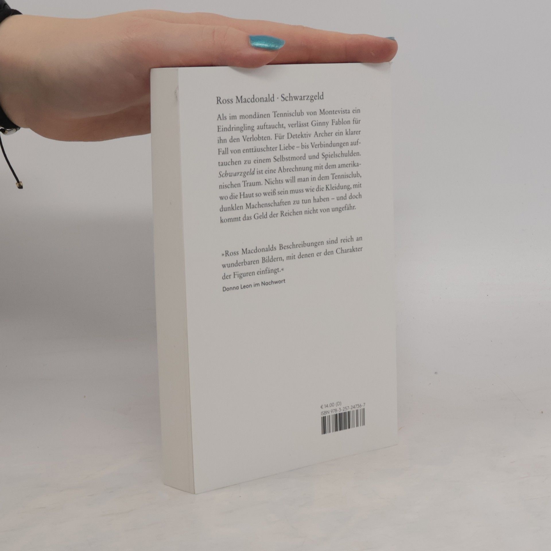 Als im mondänen Tennisclub von Montevista ein Eindringling auftaucht, verlässt Ginny Fablon für ihn den Verlobten. Für Detektiv Archer ein klarer Fall von enttäuschter Liebe – bis Verbindungen auftauchen zu einem Selbstmord und Spielschulden. ›Schwarzgeld‹ ist eine Abrechnung mit dem amerikanischen Traum. Nichts will man in dem Tennisclub, wo die Haut so weiß sein muss wie die Kleidung, mit dunklen Machenschaften zu tun haben – und doch kommt das Geld der Reichen nicht von ungefähr.