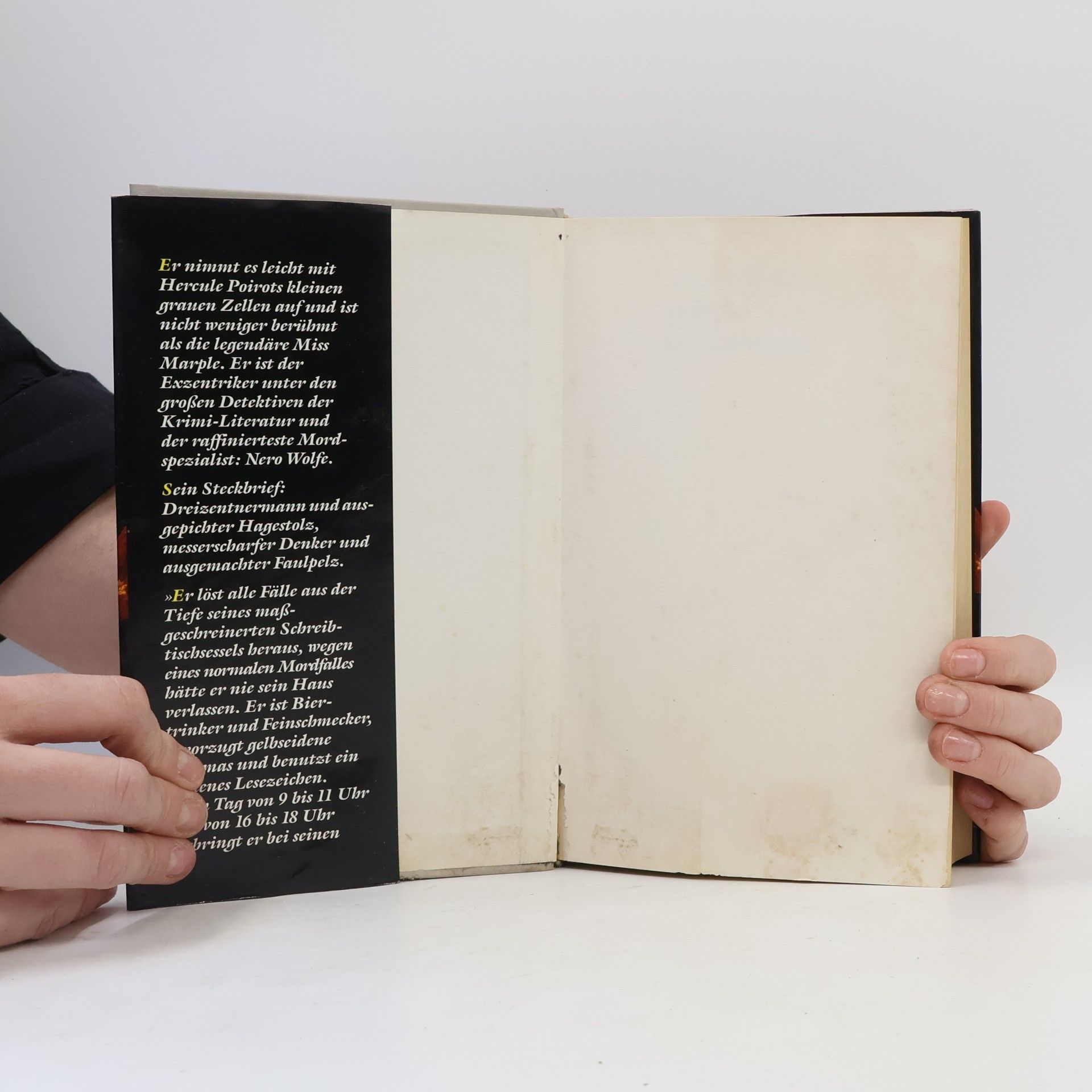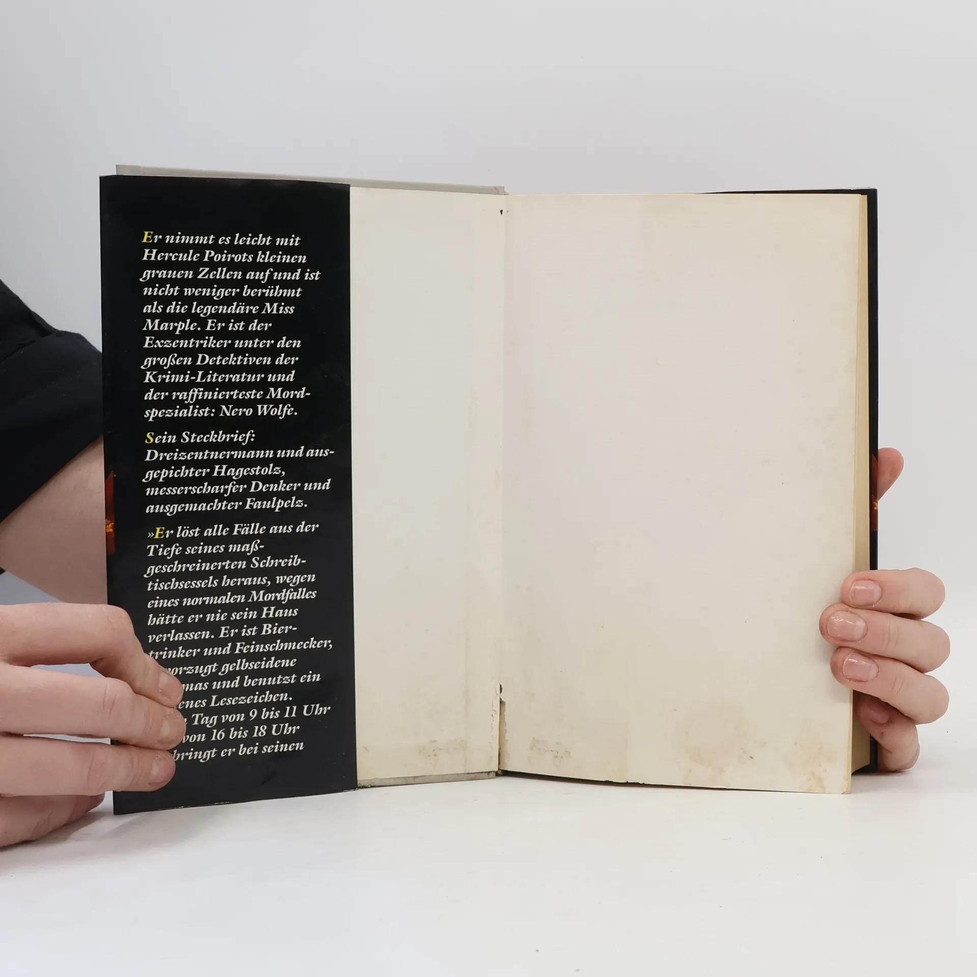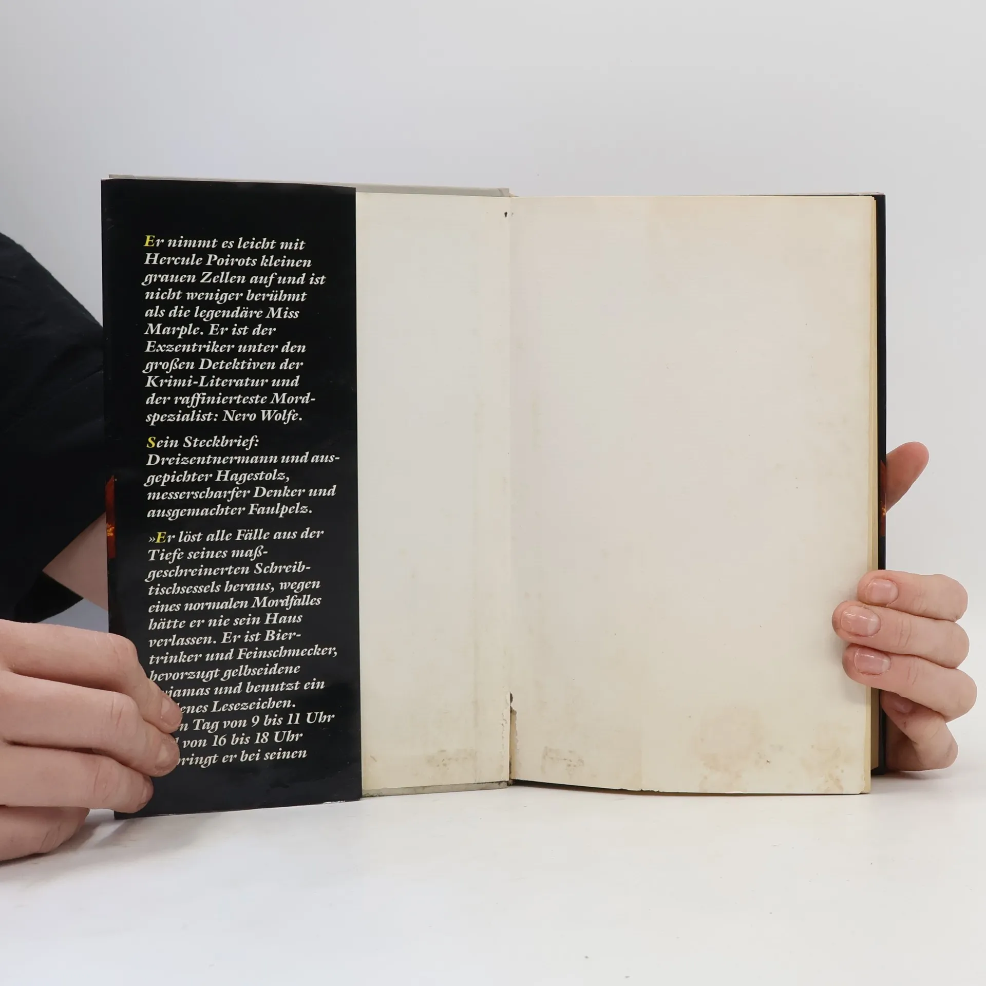 Nero Wolfe, das ist ein Drezentnermann und Frauenfeind, ein Orchideenzüchter, Biertrinker und Gourmet, vor allem aber ein Spezialist in Sachen Mord. Was ihn von vielen bekannten Detektiven der Literatur unterscheidet, das ist, dass er als ein messerscharfer Denker in der Regel seine Fälle vom Schreibtisch aus löst. Da er ein ausgemachter Faulpelt ist, würde er wegen eines änormalenä Mordfalls nie sein Haus verlassen.