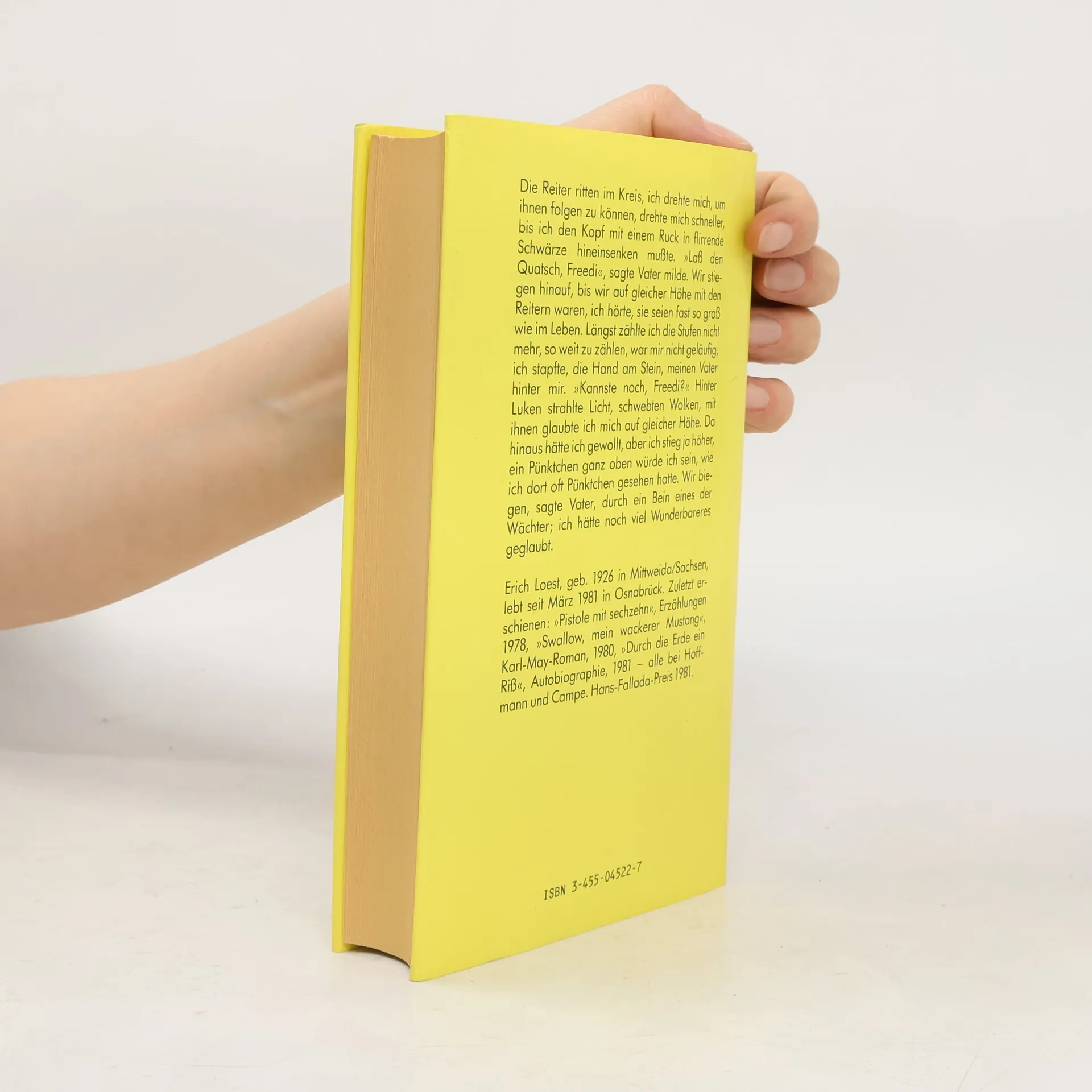 Erich Loest, geb. 1926 in Mittweida/Sachsen; 1944/45 Kriegsdienst, 1947–1950 Volontär und Redakteur bei der Leipziger Volkszeitung, ab 1950 freischaffender Schriftsteller (Debüt „Jungen die übrig blieben“), 1957 Ausschluss aus der SED, Verurteilung zu siebeneinhalb Jahren Zuchthaus (Bautzen) aus politischen Gründen, nach Entlassung wieder als Schriftsteller tätig, 1979 Austritt aus dem Schriftstellerverband aus Protest gegen Zensur, 1981 Ausreise in die Bundesrepublik, 1994–1997 Vorsitzender des Verbandes Deutscher Schriftsteller. Loest bekam unter anderem den Hans-Fallada-Preis, den Marburger Literaturpreis, zweimal den Jakob-Kaiser-Preis, 2009 den Deutschen Nationalpreis sowie den Kulturgroschen 2010 des Deutschen Kulturrates zuerkannt, einige seiner Bücher wurden verfilmt. Loest lebt in Leipzig, wo er 1996 Ehrenbürger wurde.