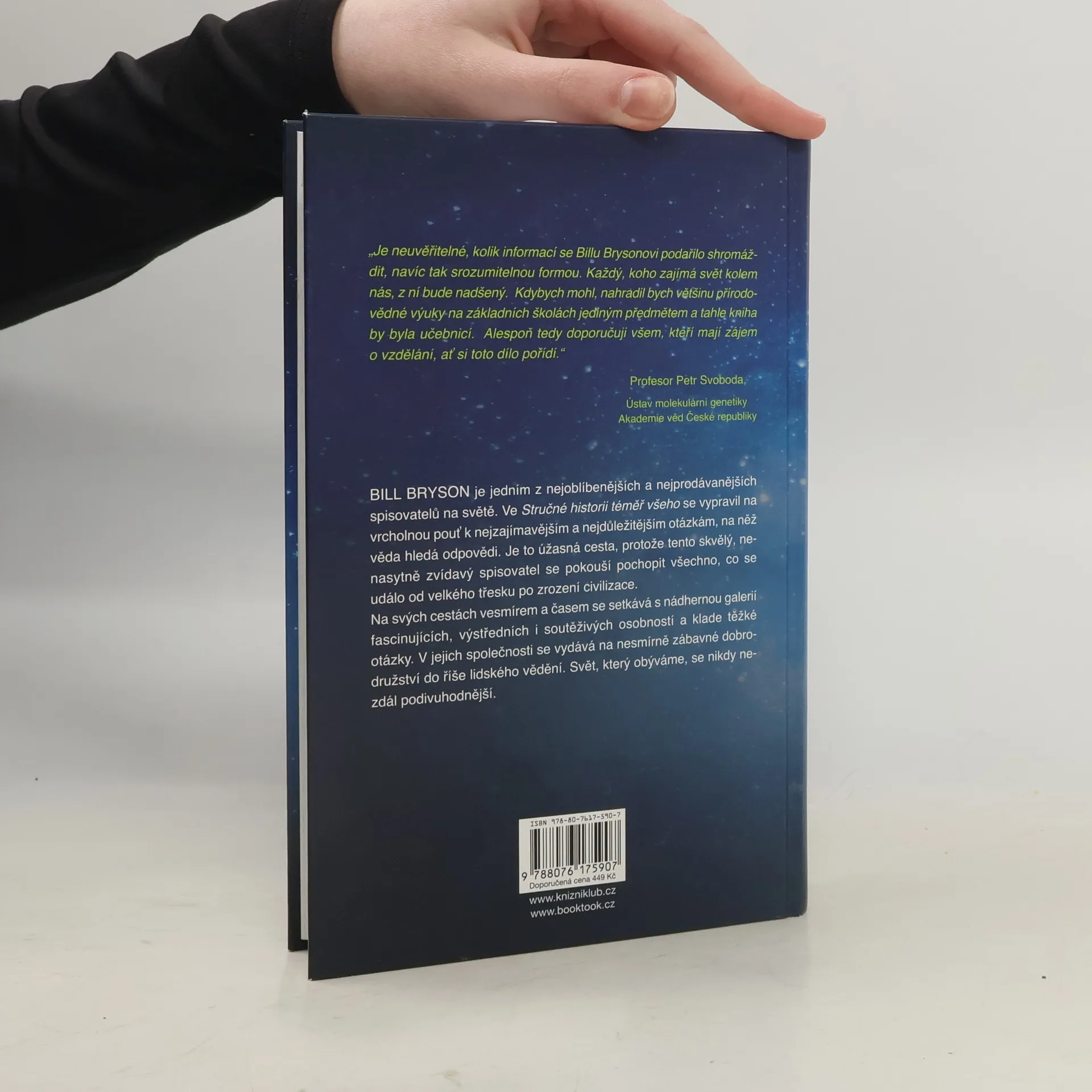 Bill Bryson je jedním z nejoblíbenějších a nejprodávanějších spisovatelů na světě. Ve Stručné historii téměř všeho se vydává na vrcholnou cestu k nejzajímavějším a nejdůležitějším otázkám, na něž věda hledá odpovědi. Je to úžasná cesta, celoživotní intelektuální odysea, protože tento nenasytně zvědavý spisovatel se pokouší pochopit všechno, co se událo od velkého třesku po zrození civilizace.