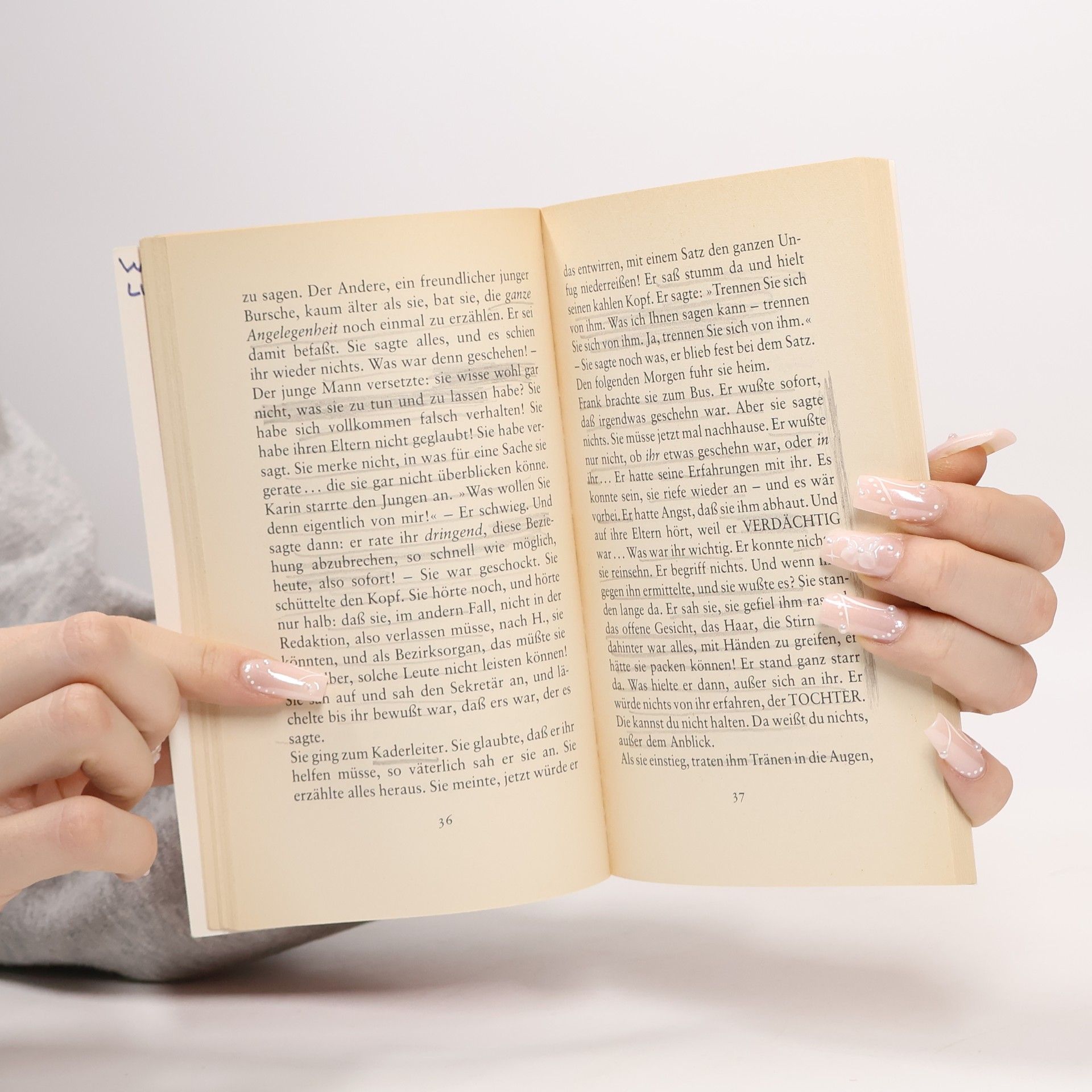 „Das ist es: das Glücksverlangen des einzelnen. Und die, die in Volker Brauns Geschichte nach ihrem Glück suchen, es finden und sich nicht gegen die Zerstörung ihres Glücks durch die Gesellschaft zur Wehr setzen können, sind Karin, die achtzehn-jährige Volontärin an einer Bezirkszeitung, und ihr Freund Frank, ein ehemaliger Rowdy, ein Einzelgänger; er arbeitet als Fernmeldetechniker.“