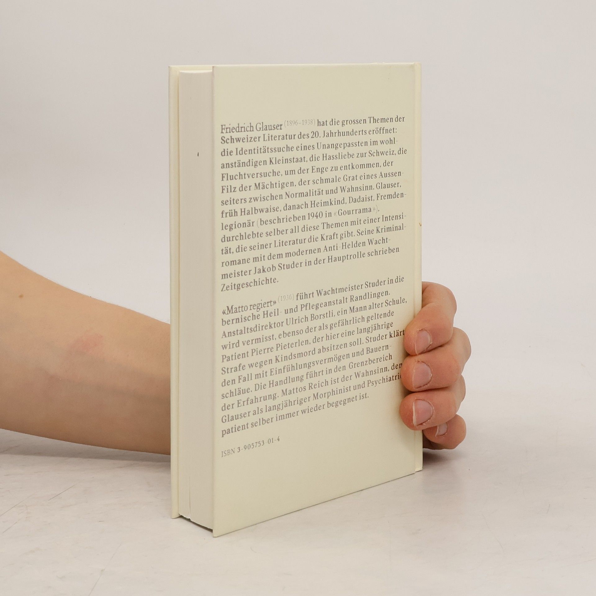 Polizeiwachtmeister Studer ermittelt. Diesmal in einer psychiatrischen Klinik, aus der der Direktor und ein Patient verschwunden sind. Dort taucht Studer ein in das Reich von Matto, in das Reich des Wahns. Im Gegensatz zu seinem französischen Kollegen Maigret setzt sich Glausers Kommissar dabei selber aufs Spiel. Ein Grenzgang zwischen Wahn und Normalität.