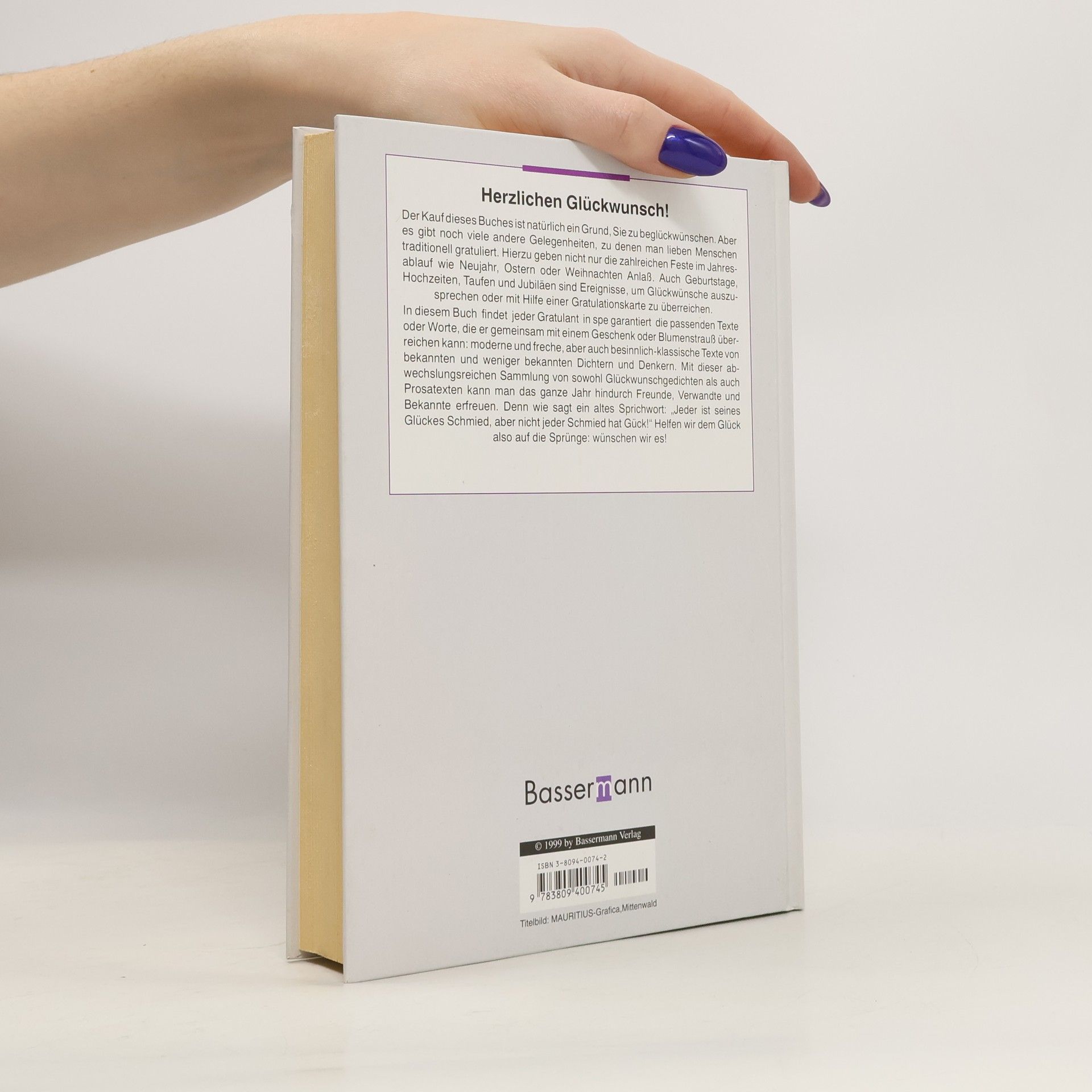 Damit einem nicht die Worte fehlen In diesem Buch findet jeder Gratulant in spe garantiert die passenden Texte oder Worte, die er gemeinsam mit einem Geschenk oder Blumenstrauß übereichen kann: moderne und freche, aber auch besinnlich-klassische Texte von bekannten und weniger bekannten Dichtern und Denkern. Sie sind geeignet für alle Feste im Jahreslauf wie Neujahr, Ostern, Weihnachten, aber auch Hochzeiten, Taufen und Jubiläen. Mit dieser abwechslungsreichen Sammlung von sowohl Glückwunschgedichten als auch Prosatexten kann man das genze Jahr hindurch Freunde, Verwandte und Bekannte erfreuen. Ausstattung: Mit 21 s/w-Vignetten