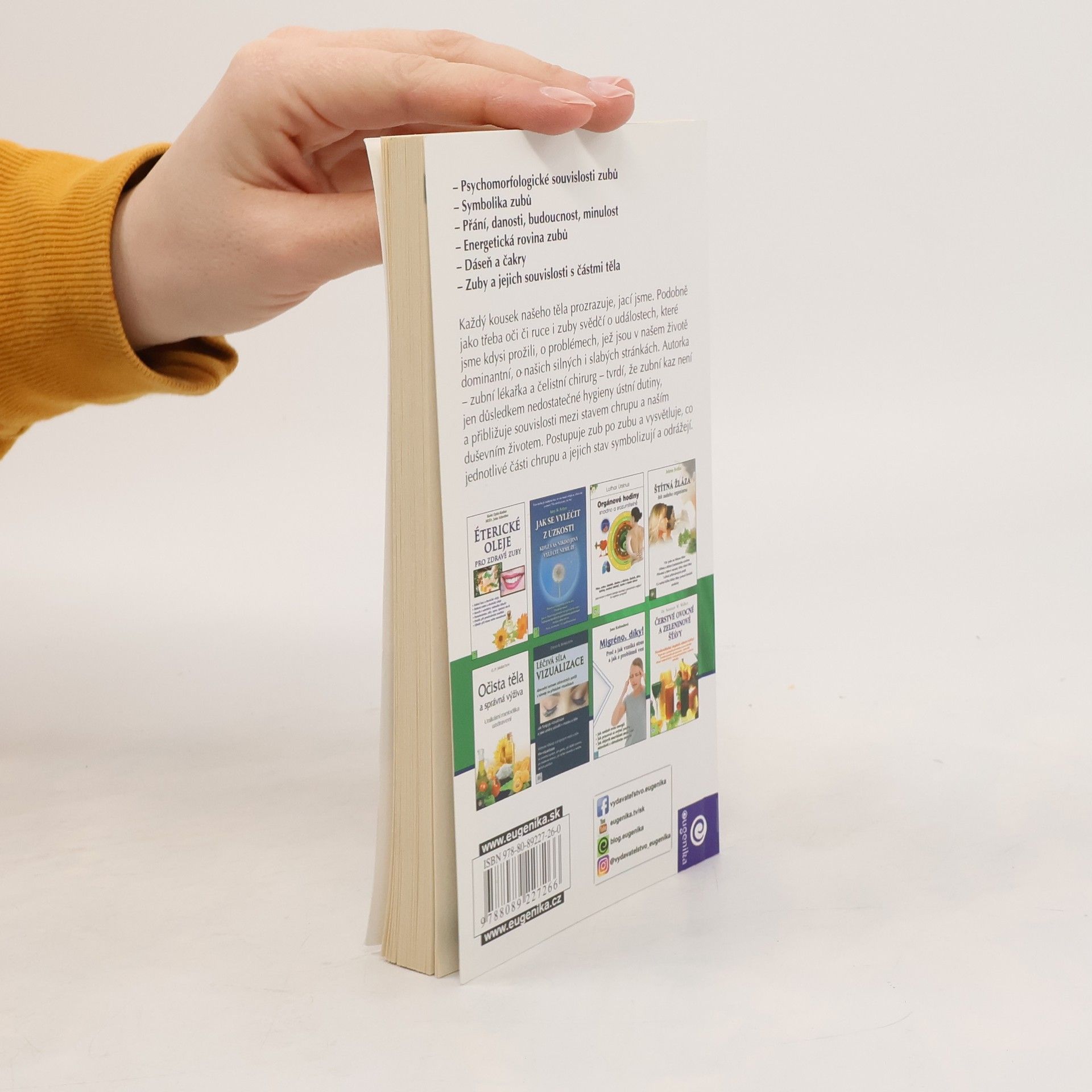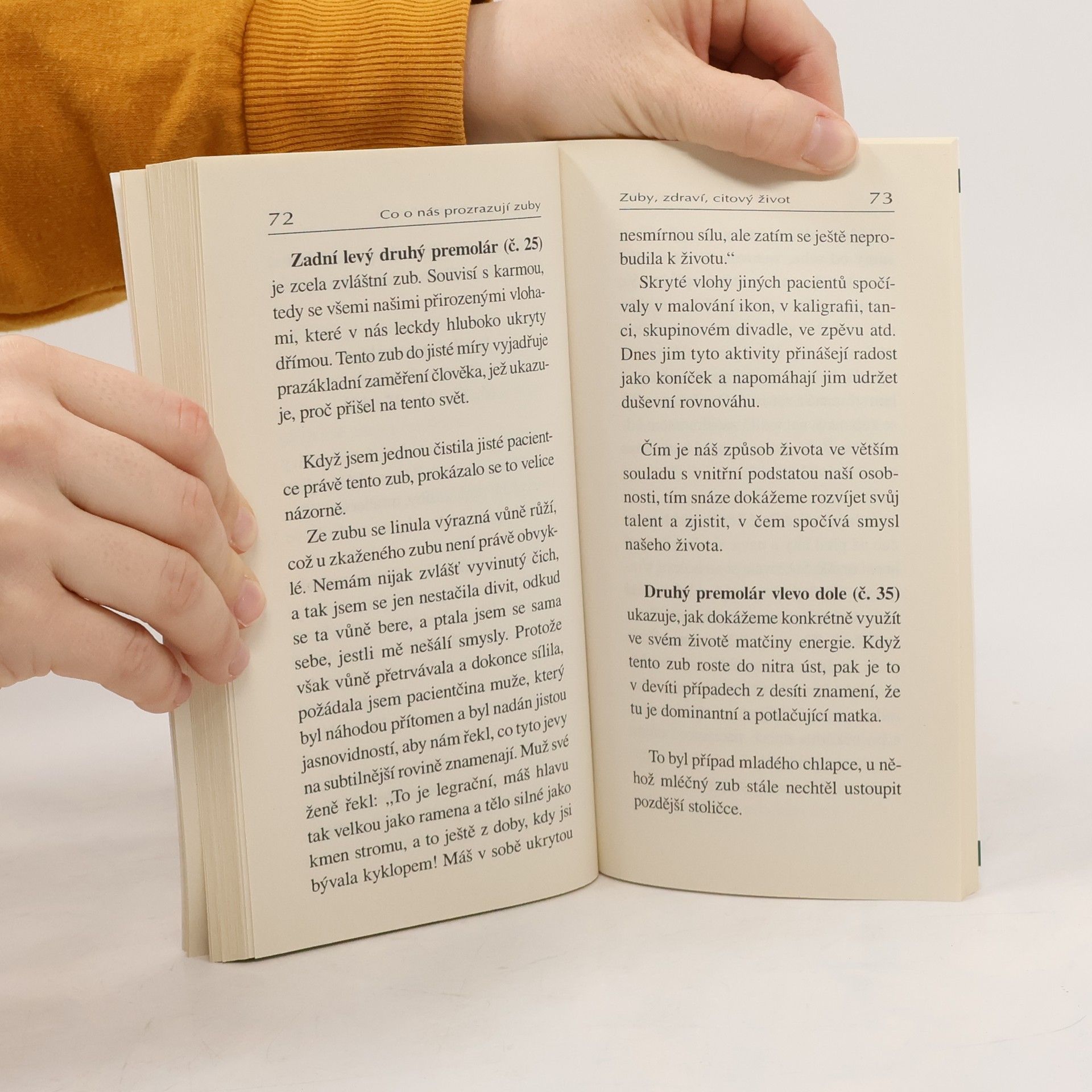 Zuby jsou zrcadlem našeho tělesného i duševního zdraví. Ukládají se v nich vzpomínky na prožité události a traumata. Autorka - zubní lékařka tvrdí, že zubní kaz odráží vztahy mezi stavem našeho chrupu a naším citovým životem. Vysvětluje, co znamenají kazy a různé vady na jednotlivýchzubech.