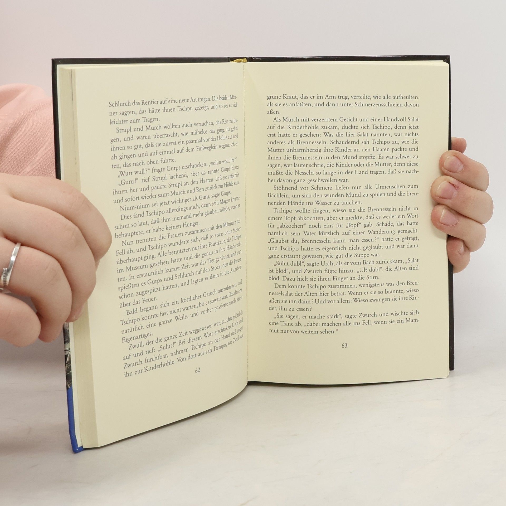 "Tschipo war heute im Traum im Heidenloch gewesen, wo die Höhlenmenschen gehaust hatten, und dann hatte er eine Pfeilspitze gefunden. Und die hielt er jetzt in der Hand. Das war vielleicht ein Fund! Den musste er sofort seiner Mutter zeigen. Aber halt! Das kannte er doch von früher, dass am Morgen etwas von seinen Träumen übrig blieb. Die Erwachsenen konnten das nicht begreifen und hielten es für eine Art Krankheit. Wenn das also wieder anfing mit dem Träumen, war es vielleicht besser, nichts davon zu erzählen..." Eines Morgens wacht Tschipo sogar in einer Höhle auf. Er hat sich in die Steinzeit geträumt! Zu einer ganzen Sippe von Höhlenbewohnern: zu Urch und Zwurch, Schlurch und Murch und wie sie alle heißen. Die wundern sich nicht schlecht über den Jungen mit der seltsamen Kleidung, aber sie haben nichts dagegen, dass er ein paar Tage bei Ihnen bleibt.