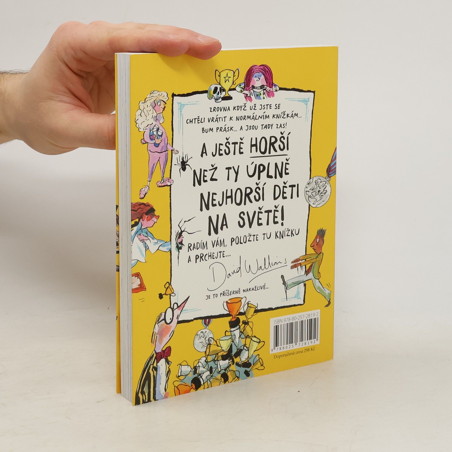 Zdá se, že zásoby dětských prohřešků, ničemností, ba zlořádů ještě zdaleka nejsou vyčerpány. David Walliams je opět s humorem sobě vlastním zmapoval, zapsal a pak je předal Tonymu Rossovi, aby k nim nakreslil spoustu vtipných ilustrací. A ejhle, na světě je nová kniha deseti příběhů o nejhorších dětech. Poznáte Vejtahu Vítězslava, Panovačnou Patricii, Jedovatého Jošta a mnoho dalších. Ale nebojte, i oni dostanou, co si zaslouží!