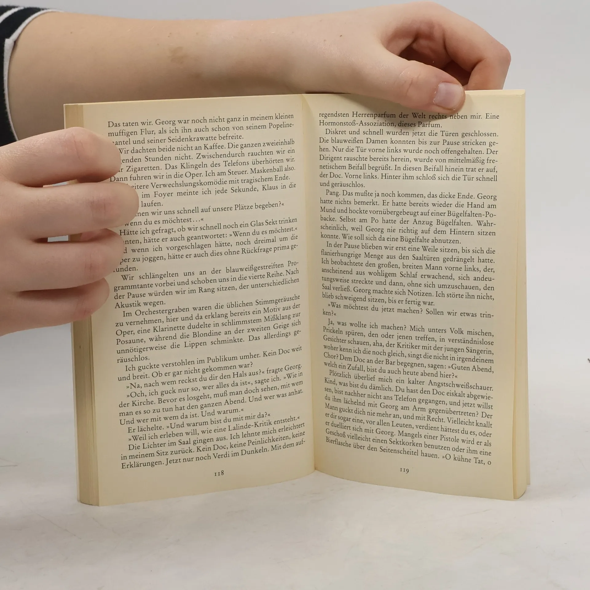 Die Heldin des Romans ist eine Musikstudentin, Mitte Zwanzig, die, kaum daß sie der streng moralischen Erziehung ihrer Tante Lilli entronnen ist, beginnt, das Leben in vollen Zügen zu genießen. Sie verdingt sich als Sängerin bei Konzerten westdeutscher Kleinstadtkultur und sieht sich alsbald durch zwei zähe Verehrer mit ernsthaften Absichten zur umschwärmten Perfektfrau und Vorstadt-Callas gemacht. Prekäre Situation: Sie läßt sich, emanzipiert und lebensfroh, wie sie ist, sowohl mit dem verheirateten Arzt als auch mit dem einflußreichen Kritiker ein. Als sie schwanger wird und durch allzumenschliches Versagen eine Welturaufführung platzen läßt, bricht die Illusion vom fröhlich-freien Künstlerinnendasein jäh zusammen. Doch wie jede gute Geschichte nimmt auch diese eine überraschende Wendung.
