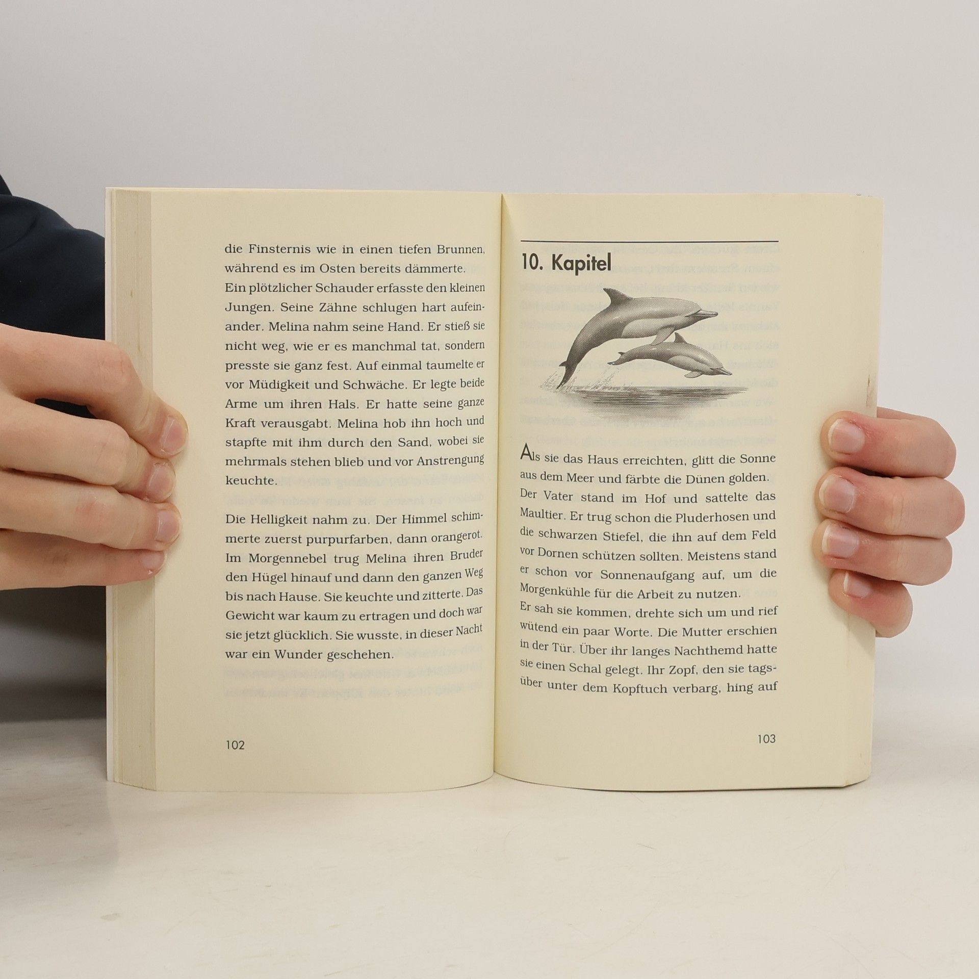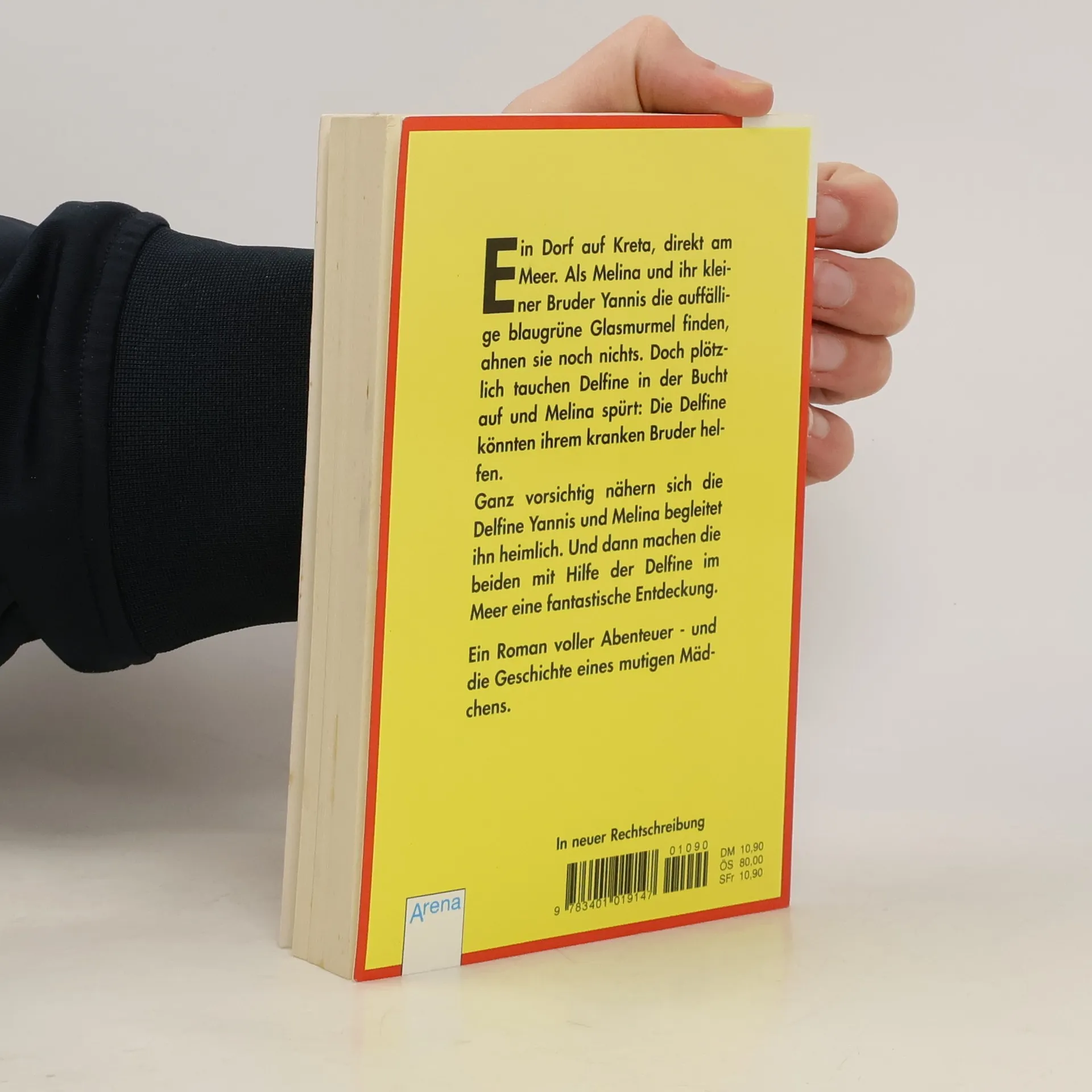 Ein Dorf auf Kreta, direkt am Meer. Als Melina und ihr kleiner Bruder Yannis die auffällige blaugrüne Glasmurmel finden, ahnen sie noch nichts. Doch plötzlich tauchen Delfine in der Bucht auf und Melina spürt: Die Delfine könnten ihrem kranken Bruder helfen.Ganz vorsichtig nähern sich die Delfine Yannis und Melina begleitet ihn heimlich. Und dann machen die beiden mit Hilfe der Delfine im Meer eine fantastische Entdeckung.Ein Roman voller Abenteuer - und die Geschichte eines mutigen Mädchens.