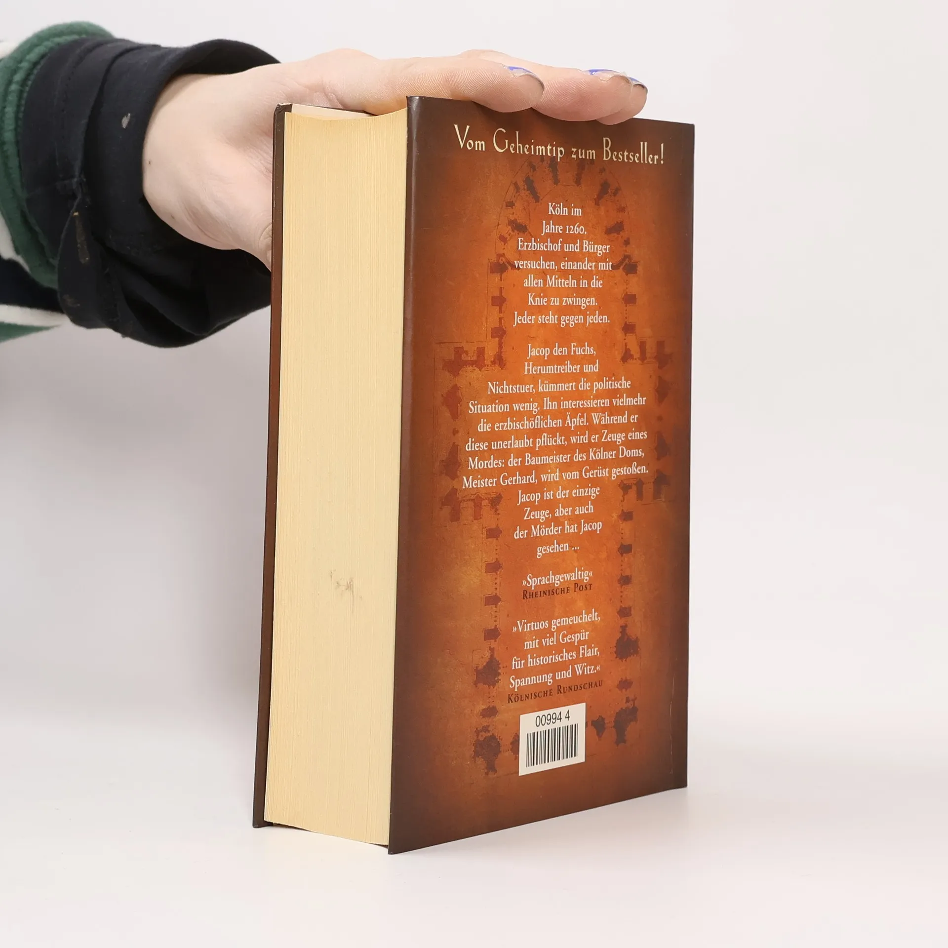 Köln im Jahr 1260: Jacop der Fuchs, ein liebenswerter Dieb und Herumtreiber, wird unfreiwillig Zeuge eines Mordes. Er sieht, wie eine düstere Gestalt den Kölner Dombaumeister vom Gerüst in den Tod stößt. Aber er selbst muss auch gesehen worden sein. Denn jeder, dem Jacop diese Geschichte erzählt, ist kurze Zeit später tot. Dem jungen Mann wird schnell klar, dass er nur eine Chance hat, seine Haut zu retten. Er muss den Täter entlarven, bevor auch er zu seinem Opfer wird ...