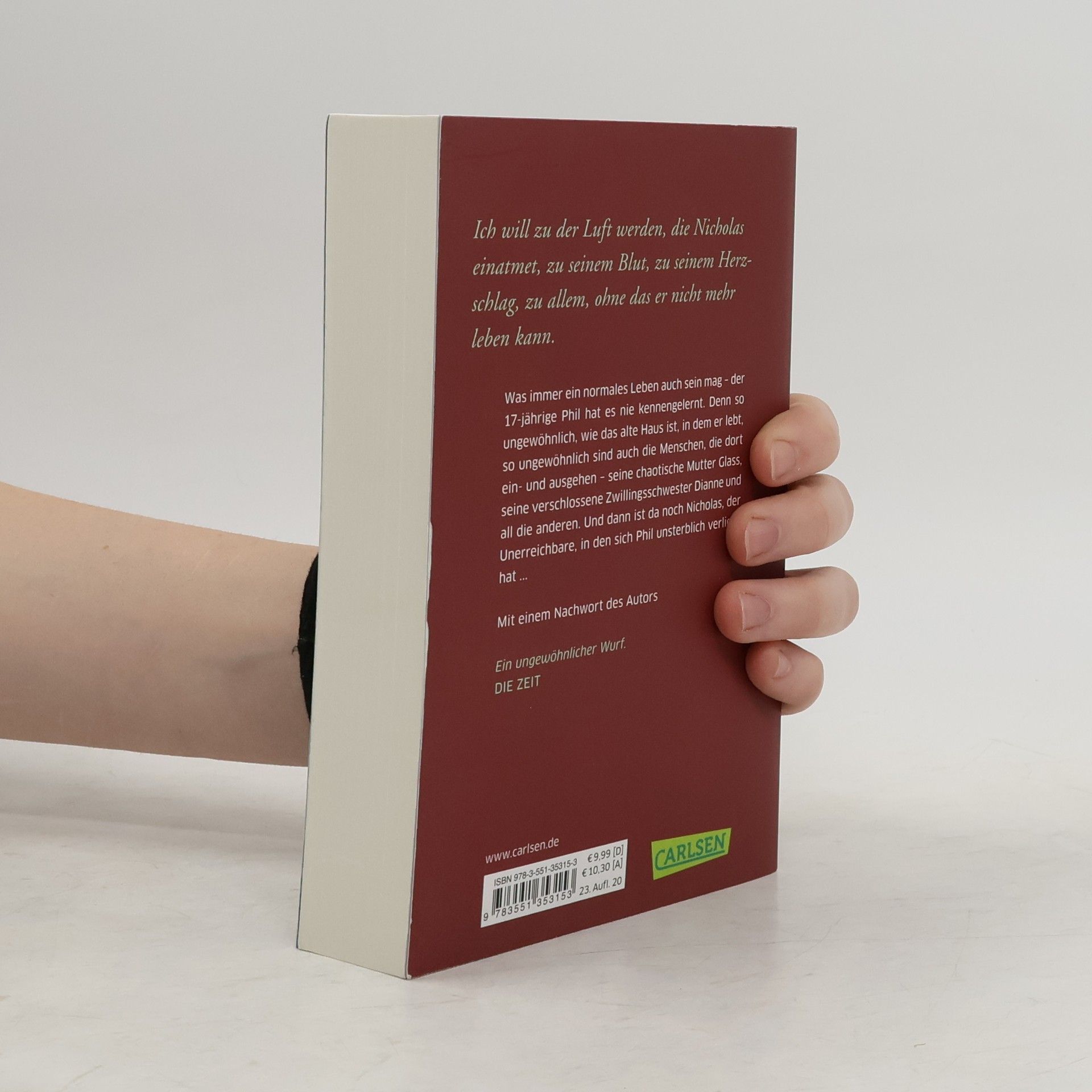 Was immer ein normales Leben auch sein mag – der 17-jährige Phil hat es nie kennengelernt. Denn so ungewöhnlich wie das alte Haus ist, in dem er lebt, so ungewöhnlich sind auch die Menschen, die dort ein- und ausgehen – seine chaotische Mutter Glass, seine verschlossene Zwillingsschwester Dianne und all die anderen. Und dann ist da noch Nicholas, der Unerreichbare, in den Phil sich unsterblich verliebt.