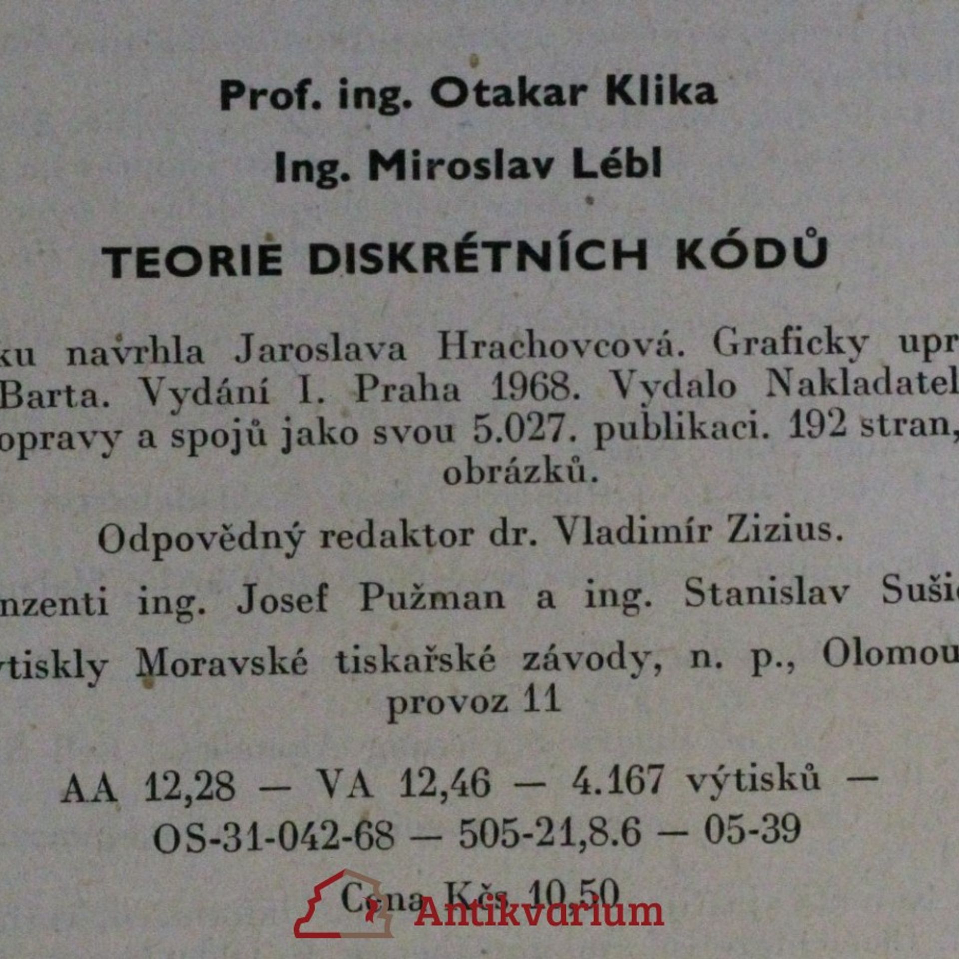 Teorie diskrétních kódů : Určeno také stud. postgraduálního kursu "Přenos dat" a studentům oborů sdělovací techn., Otakar Klika, Miroslav Lébl