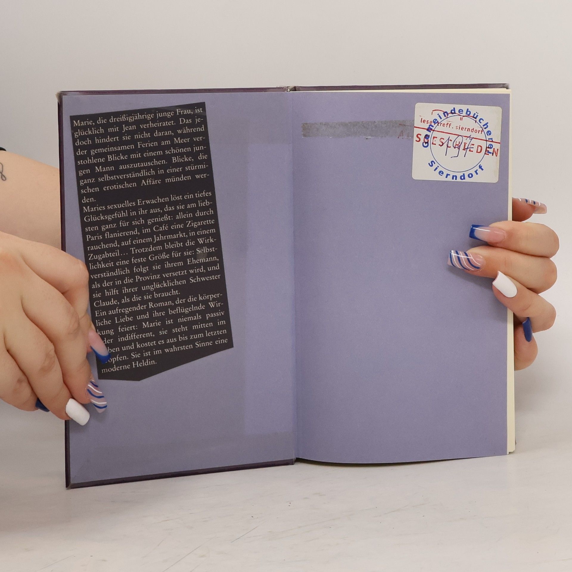 Frankreich vor dem Beginn des Zweiten Weltkriegs: Marie ist dreißig, glücklich verheiratet, von ihren Freundinnen beneidet, weil sie die Einzige sei, die ihren Mann aus tiefstem Herzen liebe. Doch bei einem Urlaub am Meer entdeckt sie, dass ihr diese Liebe nicht reicht. Zu oft fühlt sie sich innerlich einsam. Eines Nachmittags am Strand fällt ihr Blick auf einen jungen Mann. Sie fühlt sich zu dem zehn Jahre Jüngeren hingezogen, und er sich zu ihr. Sie beginnen eine Affäre. Marie empfindet dies weder als Verrat an ihrer Ehe noch als Grund, sich von ihrem Mann zu trennen. Ohne Reue genießt sie ihre erwachte Sinnlichkeit und genießt es, sich in ihr neu kennenzulernen. Mal distanziert beobachtend, mal mit großer emo­tionaler Nähe, immer präzise und zartfühlend, zeichnet Madeleine Bourdouxhe die Psyche einer glücklichen modernen Frau jenseits der Konven­tionen.