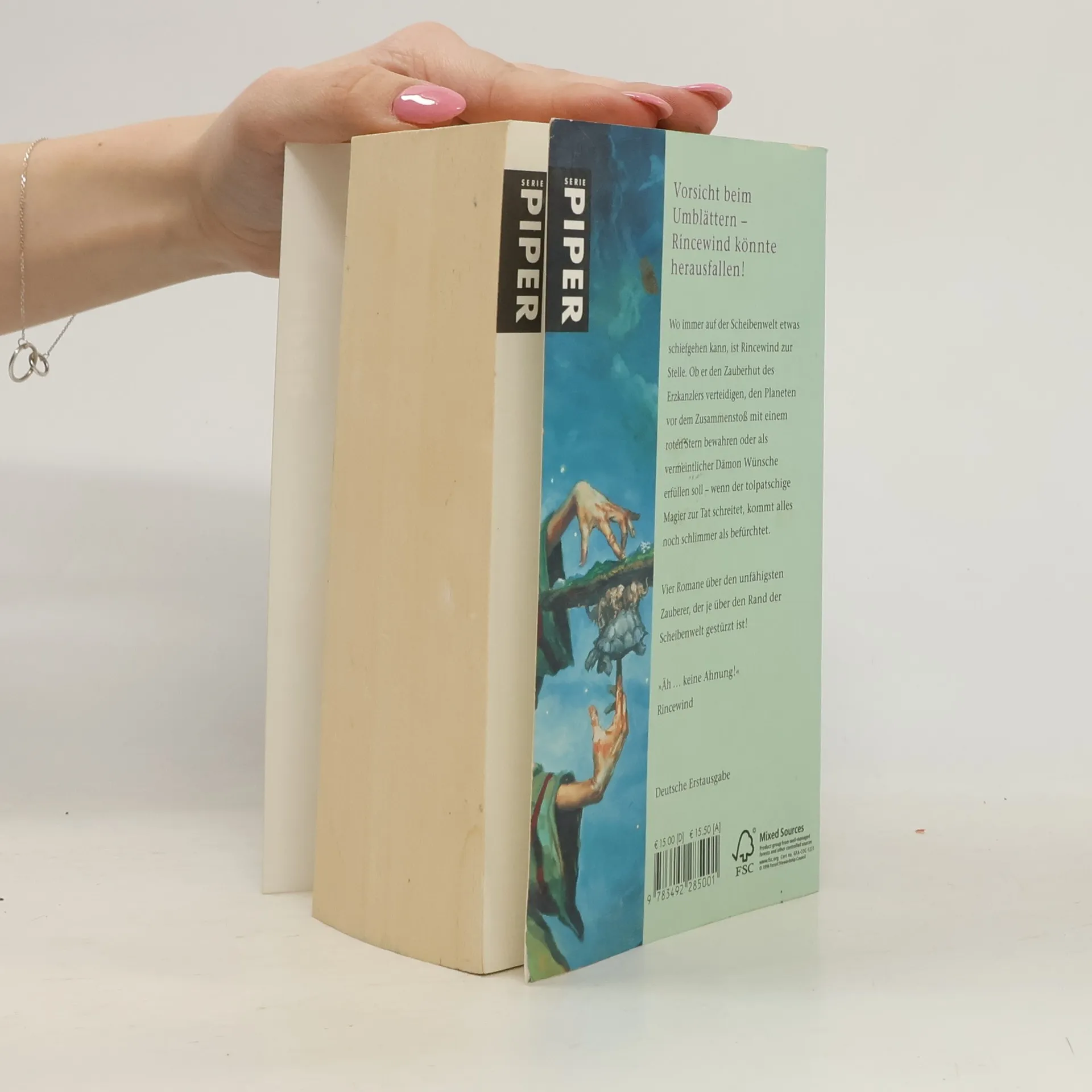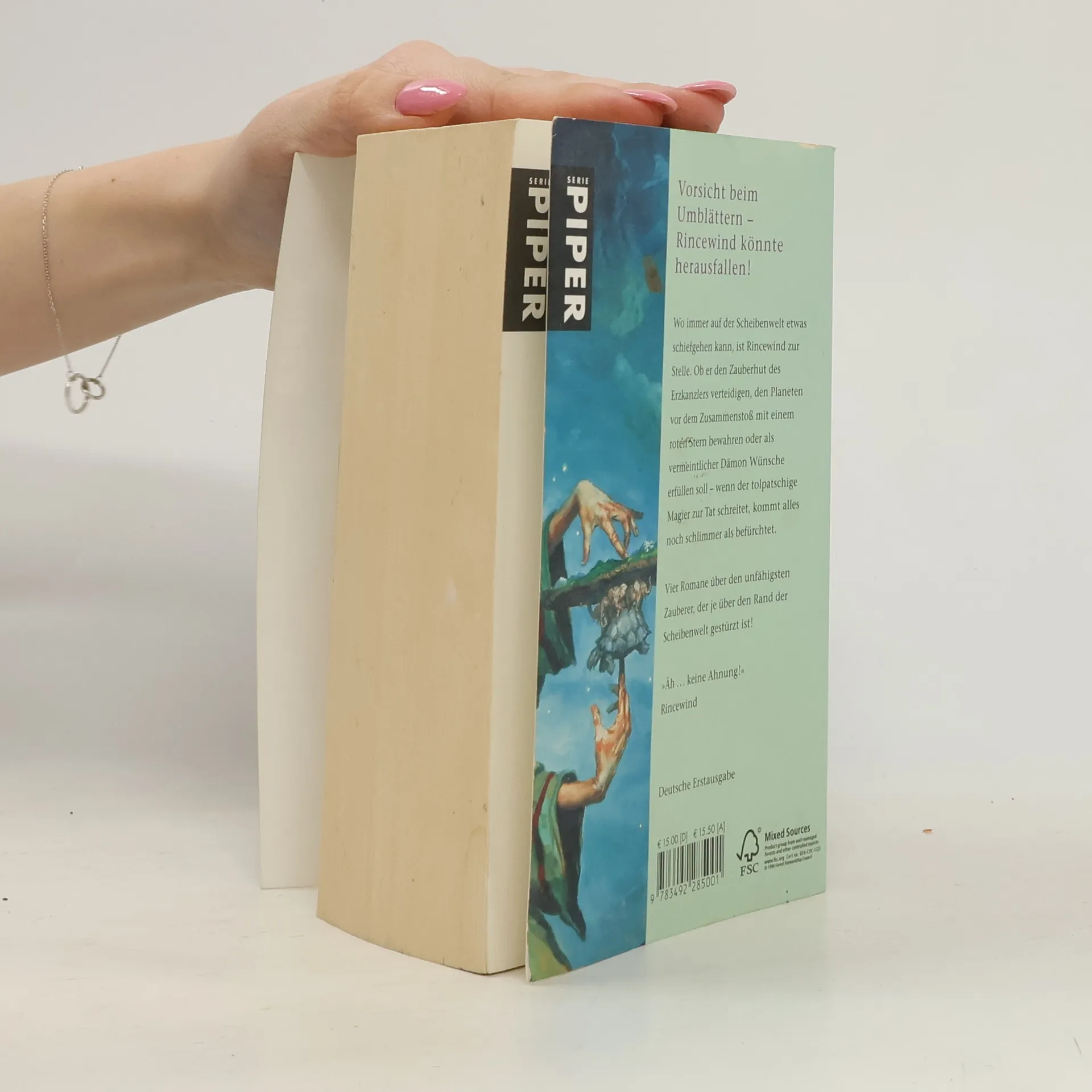 Der tollpatschigste Scheibenwelt-Sammelband aller Zeiten: Vorsicht beim Umblättern, Rincewind könnte herausfallen! Jeder, der mit dem chaotischen Zauberer Rincewind zu tun hatte, wünscht sich, einmal mit Profis zu arbeiten. In diesem Sammelband wird der gescheiterte Zauberer durch vier große Abenteuer geschickt. Seine Biografie? Fragwürdig. Seine magischen Talente? Unruhe stiften. Seine Geschichte? Unfassbar witzig! Rincewind gehört zu den schillerndsten Figuren in Terry Pratchetts Fantasy-Reihe und erfreut sich großer Beliebtheit. Die vier wichtigsten Abenteuer sind vereint: »Die Farben der Magie«, »Das Licht der Phantasie«, »Der Zauberhut« und »Eric«. »Die Farben der Magie« ist der Auftakt der Zauberer-Geschichten und gleichzeitig der erste Band der Scheibenwelt-Reihe, auf die die drei weiteren Erzählungen direkt aufbauen. Dieser Sammelband ist somit der perfekte Einstieg in die Scheibenwelt-Fantasy. Wie es sich trotz totaler Ahnungslosigkeit als Held unzähliger großartiger Geschichten lebt, erkunden Sie hier auf preisgünstige Weise. Terry Pratchetts 41 Scheibenwelt-Romane sind unerreichte Klassiker der humorvollen Fantasy und ein beispielloser internationaler Erfolg. Bei seinem Tod 2015 standen die Verkaufszahlen bei rund 45 Millionen Büchern, und täglich kommen neue Fans hinzu.