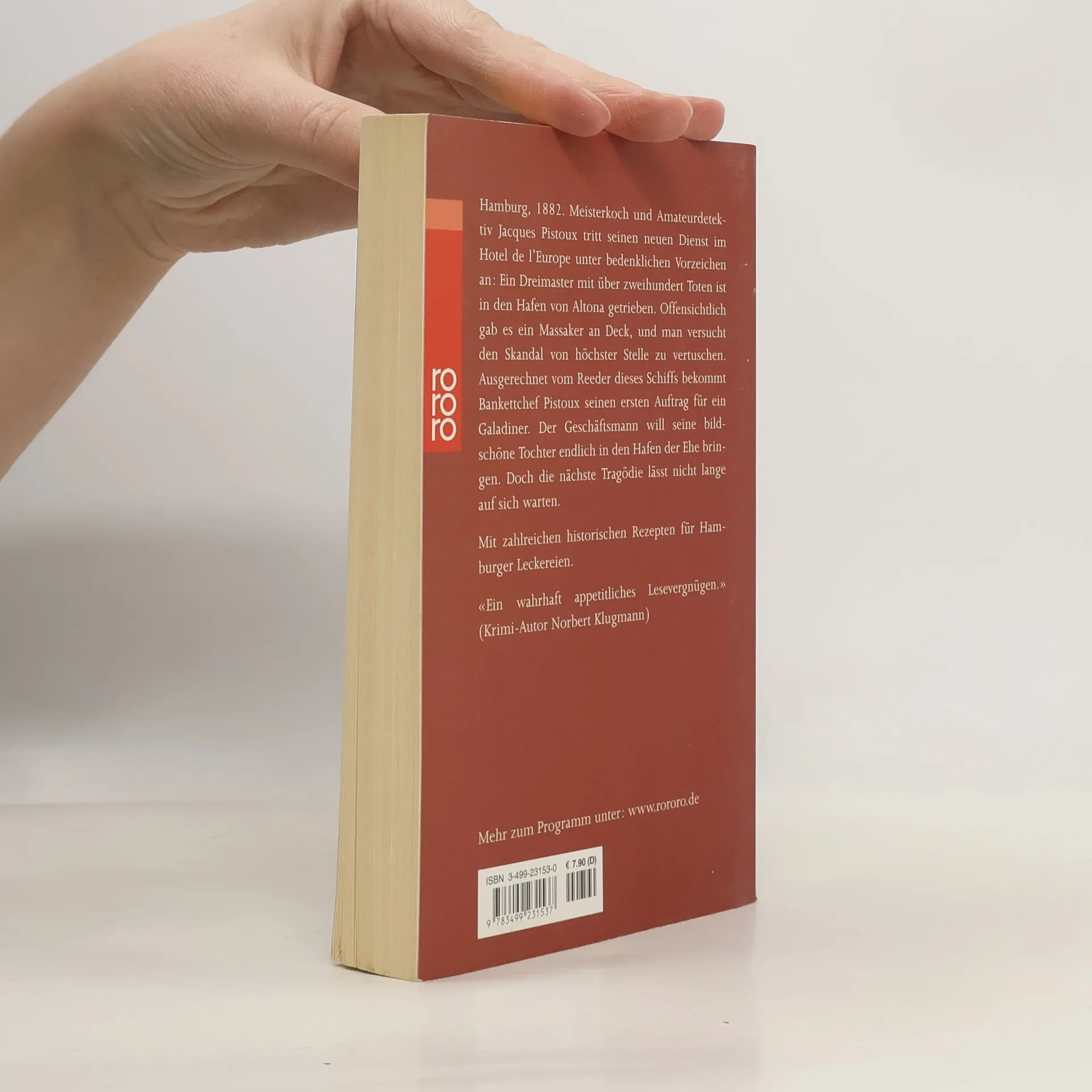 Hamburg 1882: Meisterkoch und Hobbydetektiv Jacques Pistoux ist Küchenchef in einem Nobelhotel an der Binnenalster. Sein erster Auftrag: Er soll ein Galadiner für einen reichen Reeder ausrichten. Unglücklicherweise verliebt sich Pistoux in dessen schöne Tochter - und bei dem Diner gibt es eine Leiche zum Dessert.