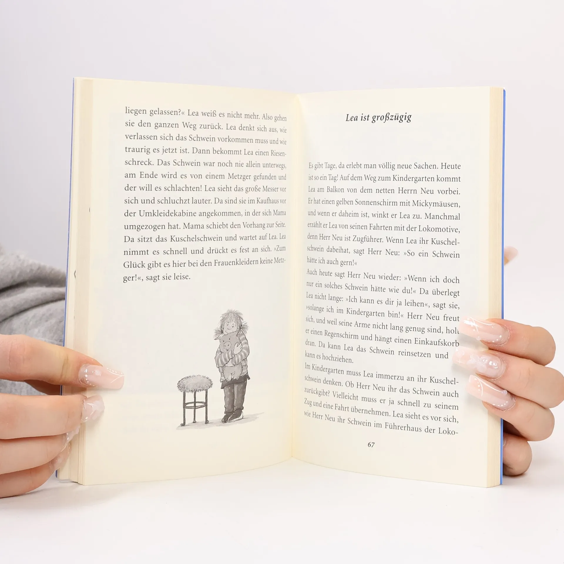 Lea ist ein quietschlebendiges, neugieriges Kindergartenkind, das unzählige alltägliche Abenteuer erlebt: Z.B. verlangt sie beim Fleischer eine Wurst für ihren imaginären Hund oder schaut dem Kinderarzt erst mal selbst in den Hals - und als er ihr dann denn Holzspatel schenkt, auch noch der halben Nachbarschaft! Sie möchte, dass ihre Mutter auch bald so alt ist wie die Omas in der Straßenbahn, denn ab einem gewissen Alter scheint man immer Bonbons in der Tasche zu haben, oder sie überrascht ihre Mutter mit einem flächendeckenden Blütenteppich in der ganzen Wohnung zum Geburtstag ...