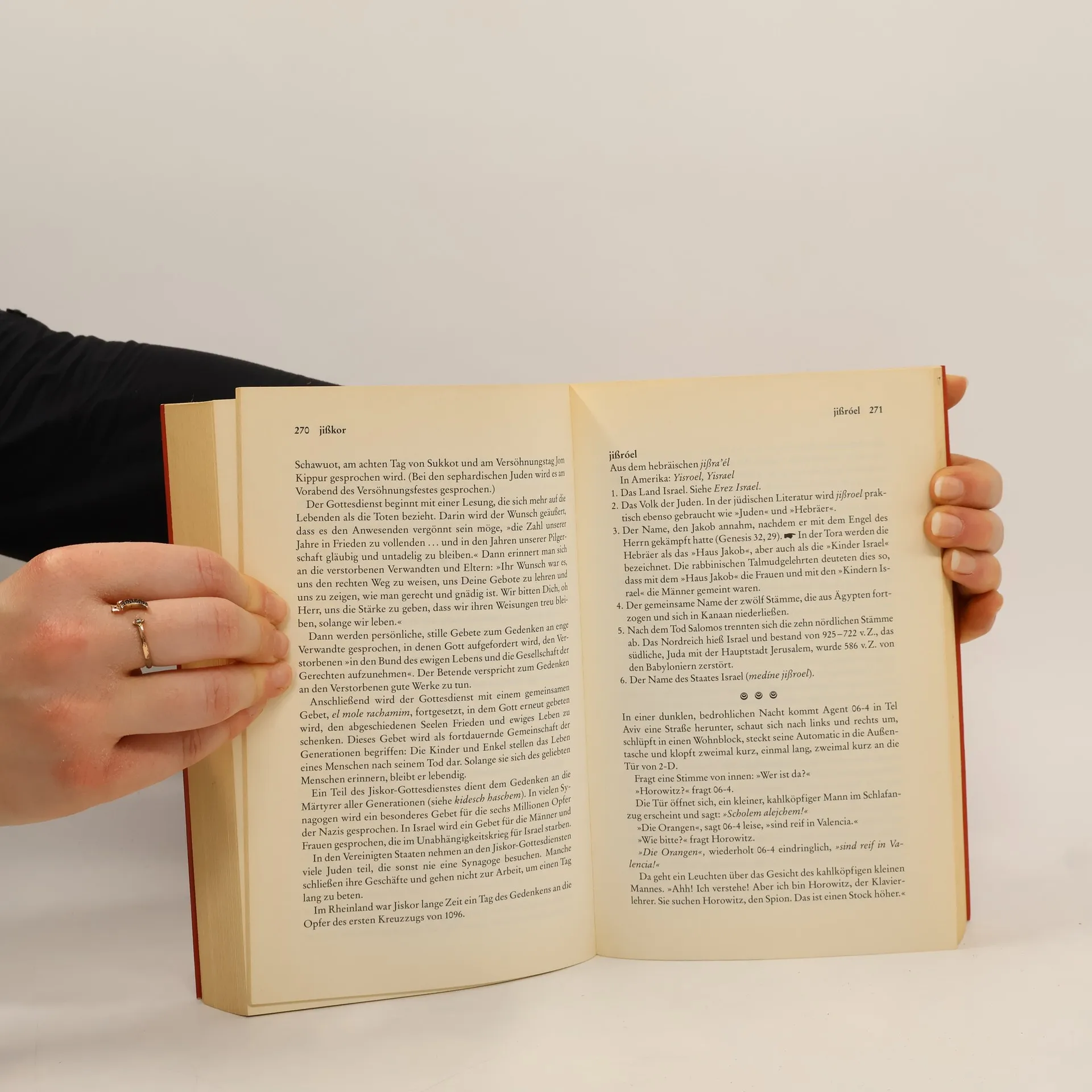 »Nu, es ist im deutschen Taschenbuchverlag a Büchl erschienen, was festhält, an was die jiddische Umgangssprache sich festhält.« profil, Reinhard Tramontana Was chuzpe, koscher, meschugge und zores heißt, wissen Sie sicher. Einen bagel, gefilte fisch, ein kichel, latkes oder lox haben Sie vielleicht auch schon gegessen. Aber wissen Sie, was das alles mit der Tora, dem Talmud und dem jüdischen Glauben zu tun hat? Jiddisch ist diejenige europäische Sprache, die dem Deutschen am nächsten steht. Wenn es heute im amerikanischen Slang hunderte von deutsch/jiddischen Lehnwörtern gibt, dann verdanken wir das nicht zuletzt den jüdischen Auswanderern, die ihre aus dem Mittelhochdeutschen stammende Sprache nach Amerika importiert haben. Leo Rosten hat Ende der sechziger Jahre ein vergnügliches Hausbuch geschaffen, das jiddische Wörter, jüdische Geschichte, Folklore und Witze mit einer zwanglosen Einführung in die Grundelemente des Judaismus verbindet und uns auf diese angenehme Weise mit einer Welt vertraut macht, die uns fast verloren gegangen wäre. Kennern ist diese Schatzkammer schon seit langem vertraut, in Amerika wurde sie aktualisiert. Für die jetzt endlich vorliegende deutsche Ausgabe wurde das Buch mit vielen Stichworten angereichert, die uns aus der deutschen Alltagssprache vertraut sind.
