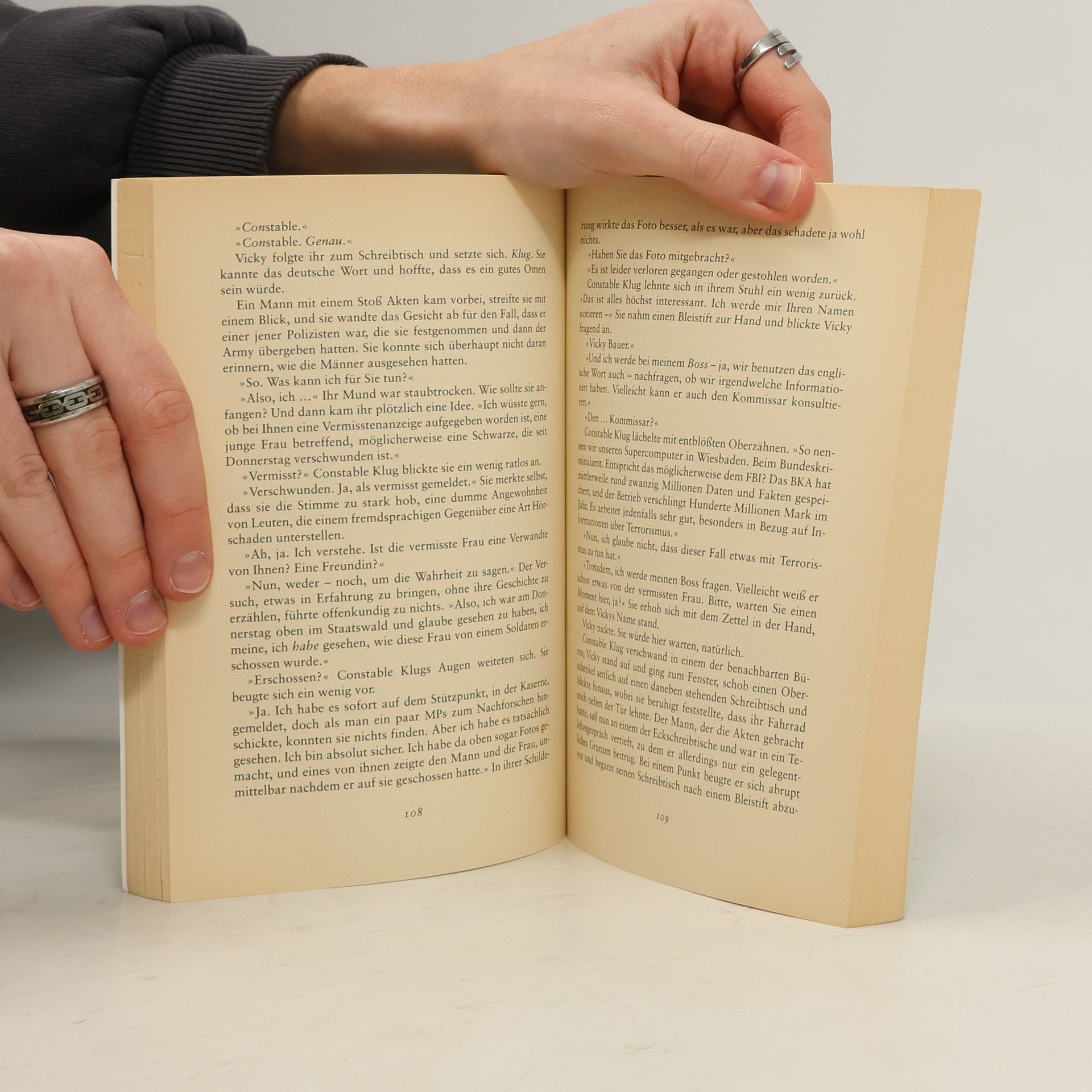 Schauplatz des spannenden Romans ist der kanadische Nato-Stützpunkt Lahr am Rande des Schwarzwalds. Die schüchterne, ein bisschen chaotische, aber überaus sympathische Vicky Bauer wird beim Fotografieren zufällig Zeugin eines Mordes. Weil man sie nicht ernst nimmt und ihr niemand glaubt, macht sie sich selbst daran, das mysteriöse Verbrechen aufzuklären, und gerät in Lebensgefahr