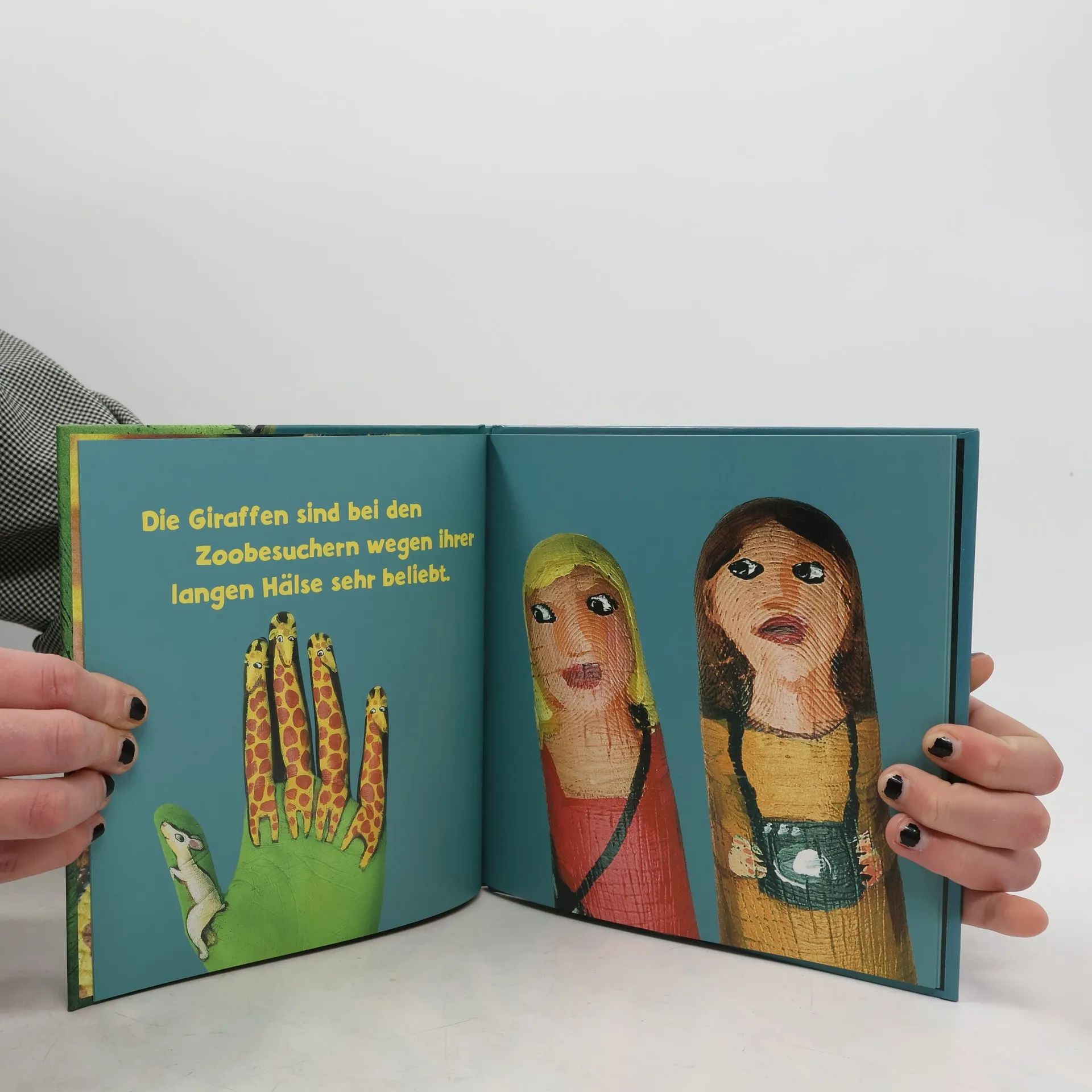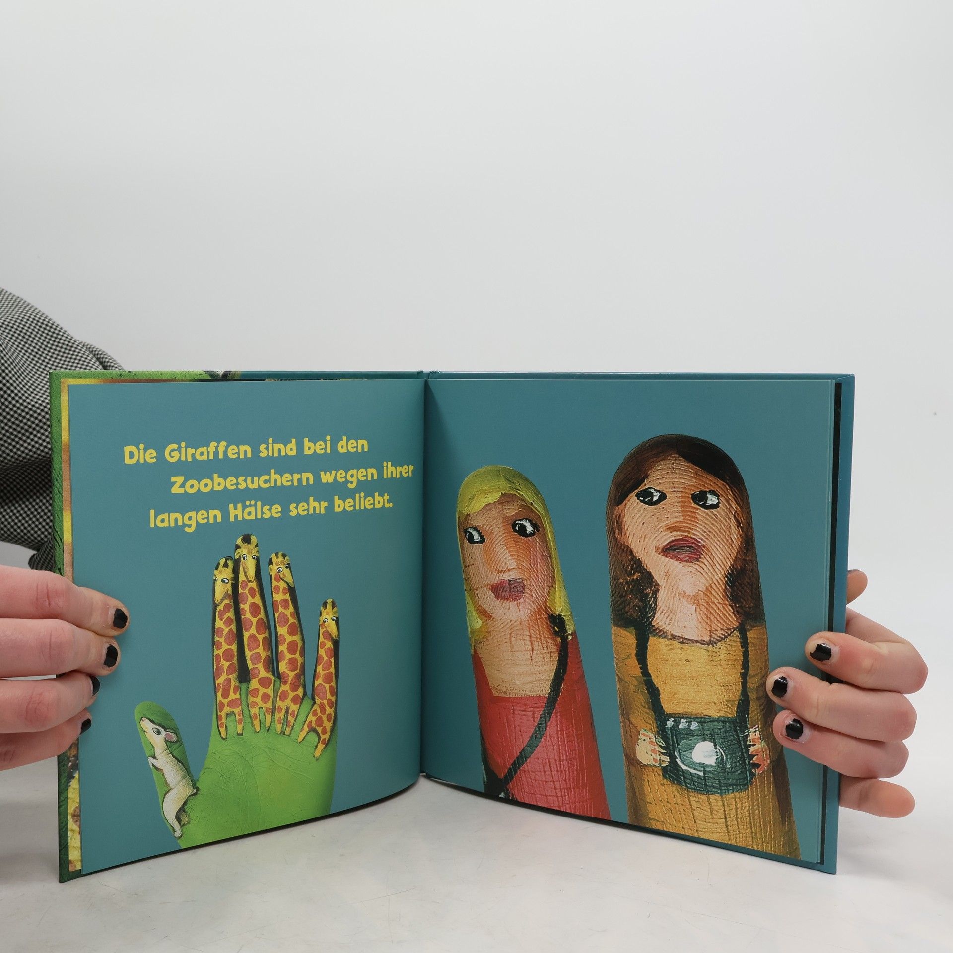 Im Zoo lebt die Gazelle im Giraffen-Gehege und ist eifersüchtig, weil die Zoobesucher immer nur die Giraffen mit ihren langen Hälsen fotografieren und die kleine Gazelle gar nicht beachten. Dabei weiß die Gazelle ganz genau, dass sie besonders schöne Augen hat und es ebenfalls verdient hätte, fotografiert zu werden. Alles wird gut, als die Giraffen ihre Hälse zur Gazelle beugen, um Wasser zu trinken: Die Zoobesucher sind begeistert – und diesmal ist auch die schöne Gazelle auf den Fotos mit drauf!