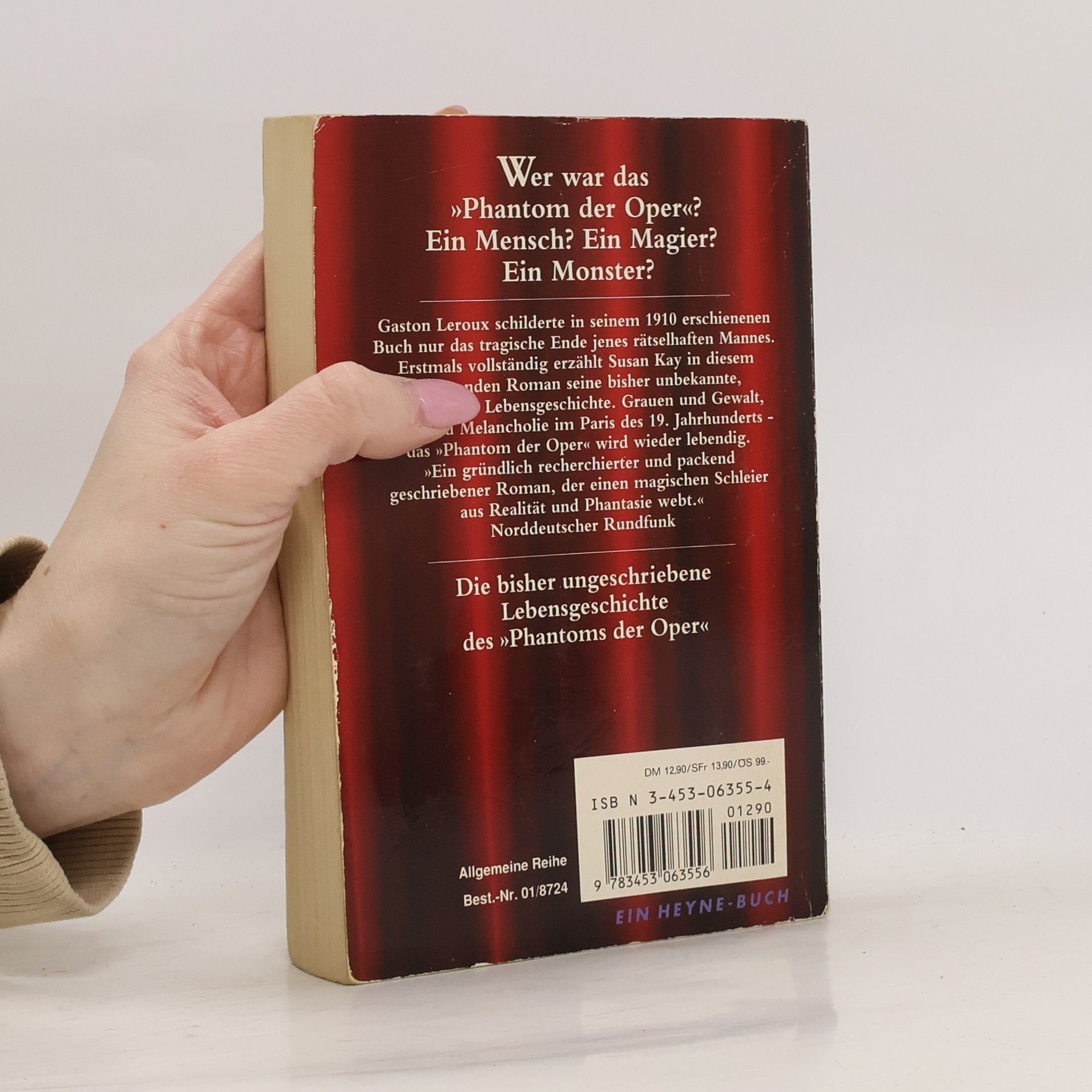 Wer war das Phantom der Oper? Ein Mensch? Ein Magier? Ein Monster? Gaston Leroux schilderte in seinem 1910 erschienenen Buch nur das tragische Ende jenes rätselhaften Mannes. Erstmals vollständig erzählt Susan Kay in diesem Roman seine bisher unbekannte, dramatische Lebensgeschichte. Grauen und Gewalt, Liebe und Melancholie im Paris des 19. Jahrhunderts - das Phantom der Oper wird wieder lebendig.