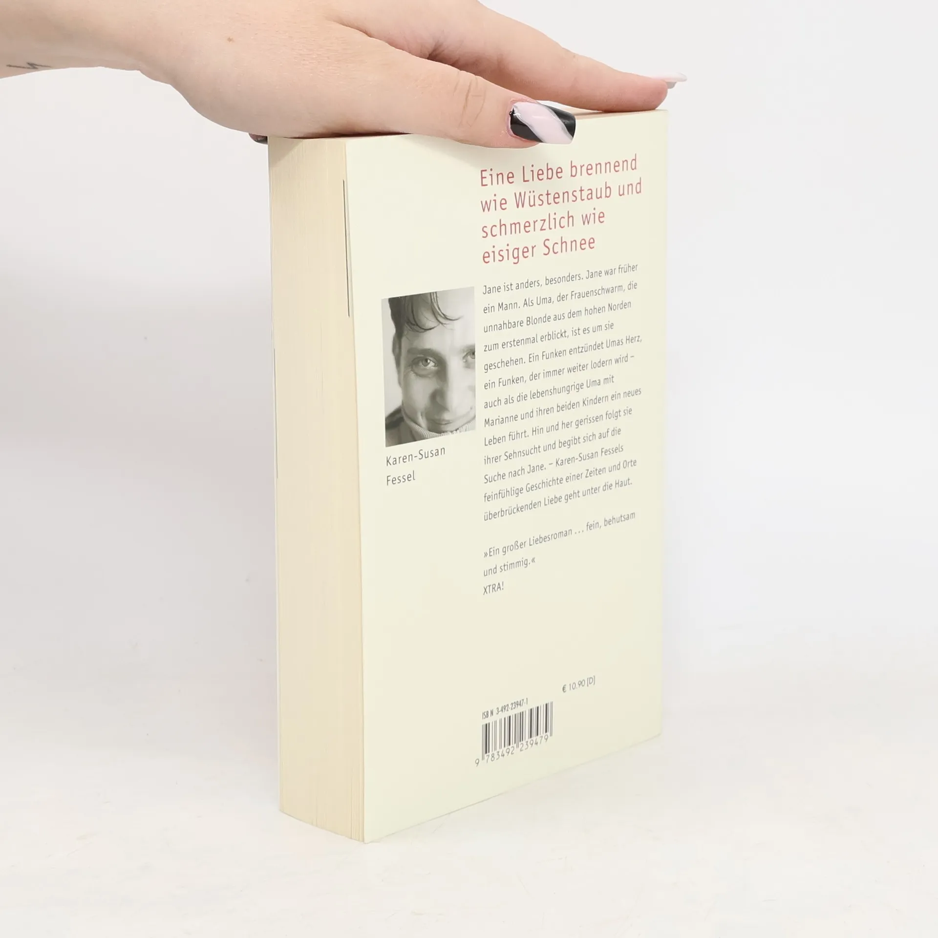 Jane ist anders, besonders. Jane war früher ein Mann. Als Uma, der Frauenschwarm, die unnahbare Blonde aus dem hohen Norden zum erstenmal erblickt, ist es um sie geschehen. Ein Funken entzündet Umas Herz, ein Funken, der immer weiter lodern wird – auch als die lebenshungrige Uma mit Marianne und ihren beiden Kindern ein neues Leben führt. Hin und her gerissen folgt sie ihrer Sehnsucht und begibt sich auf die Suche nach Jane. – Karen-Susan Fessels feinfühlige Geschichte einer Zeiten und Orte überbrückenden Liebe geht unter die Haut.