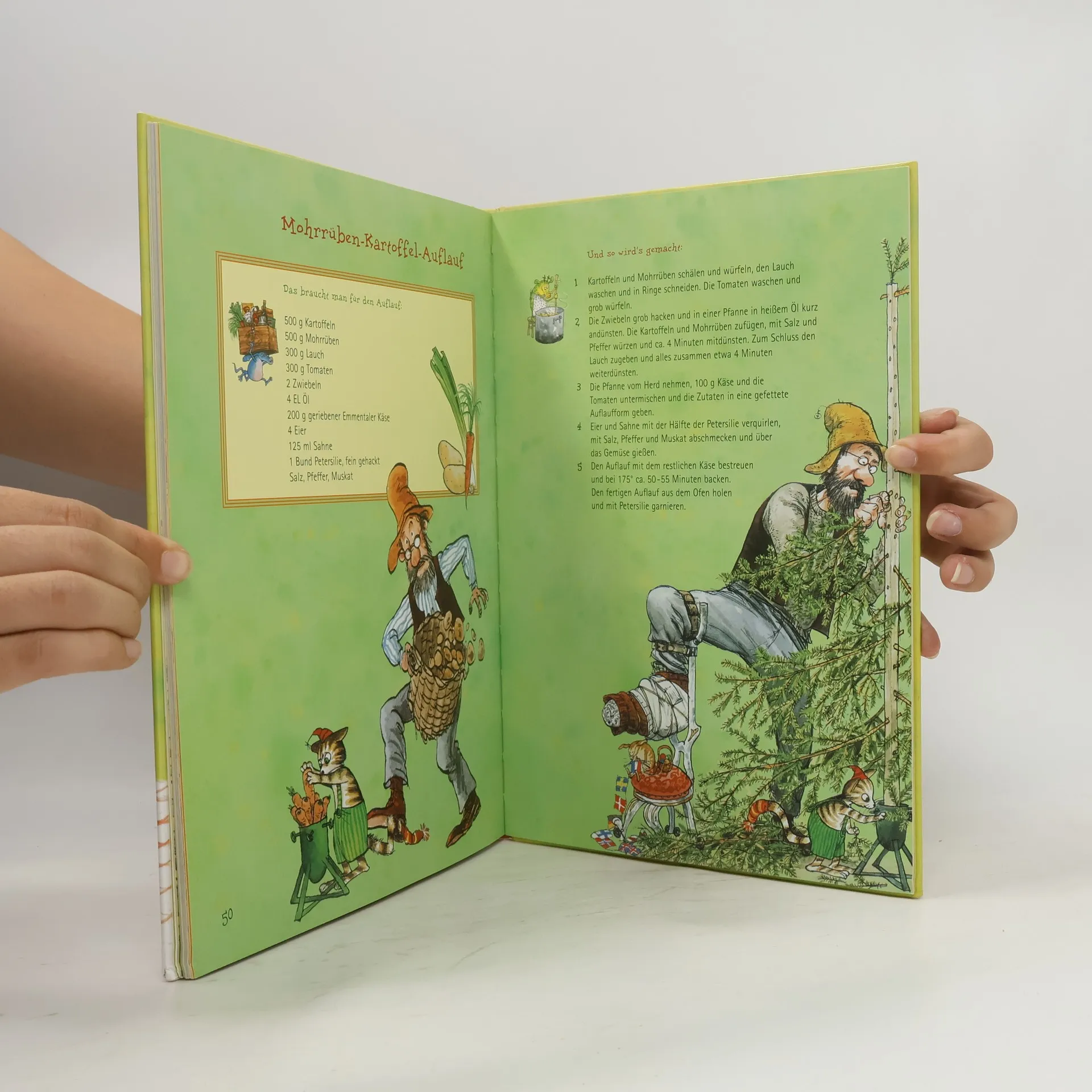 In „Kochen mit Pettersson und Findus“ laden die beliebten Charaktere Pettersson und sein pfiffiger Kater Findus zu einer kulinarischen Reise durch die vier Jahreszeiten ein. Mit 29 ihrer Lieblingsrezepte, von traditionellen Fleischklößchen über Pfannkuchentorte bis hin zu weihnachtlichem Punsch und Pfefferkuchen, wird jedes Familienmitglied zum Mitkochen und -naschen animiert. Dieses Buch ist mehr als nur ein Kochbuch; es ist ein Abenteuer, das Jung und Alt mit den liebevoll gestalteten Illustrationen von Sven Nordqvist und Ausschnitten aus den Geschichten rund um den findigen Kater und den erfinderischen alten Mann direkt ins Herz der schwedischen Küche entführt. Ein Fest für die Sinne und ein Must-have für jede Familie, die gerne gemeinsam Zeit in der Küche verbringt. Vielfältige Rezeptauswahl: 29 Lieblingsrezepte durch alle vier Jahreszeiten. Familienküche : Ein Kochbuch für gemeinsame Kocherlebnisse mit der ganzen Familie. Liebevolle Illustrationen : Begleitet von den charakteristischen Bildern von Sven Nordqvist. Pettersson und Findus Charme : Verbindet Kochspaß mit den beliebten Geschichten. Einfache und leckere Rezepte : Auch für kleine Küchenchefs ab 5 Jahren leicht nachzukochen. Einblick in die schwedische Küche : Traditionelle und moderne Rezepte für jede Gelegenheit. Perfekt für Pettersson und Findus Fans : Eine wunderbare Ergänzung zur Bücherserie.