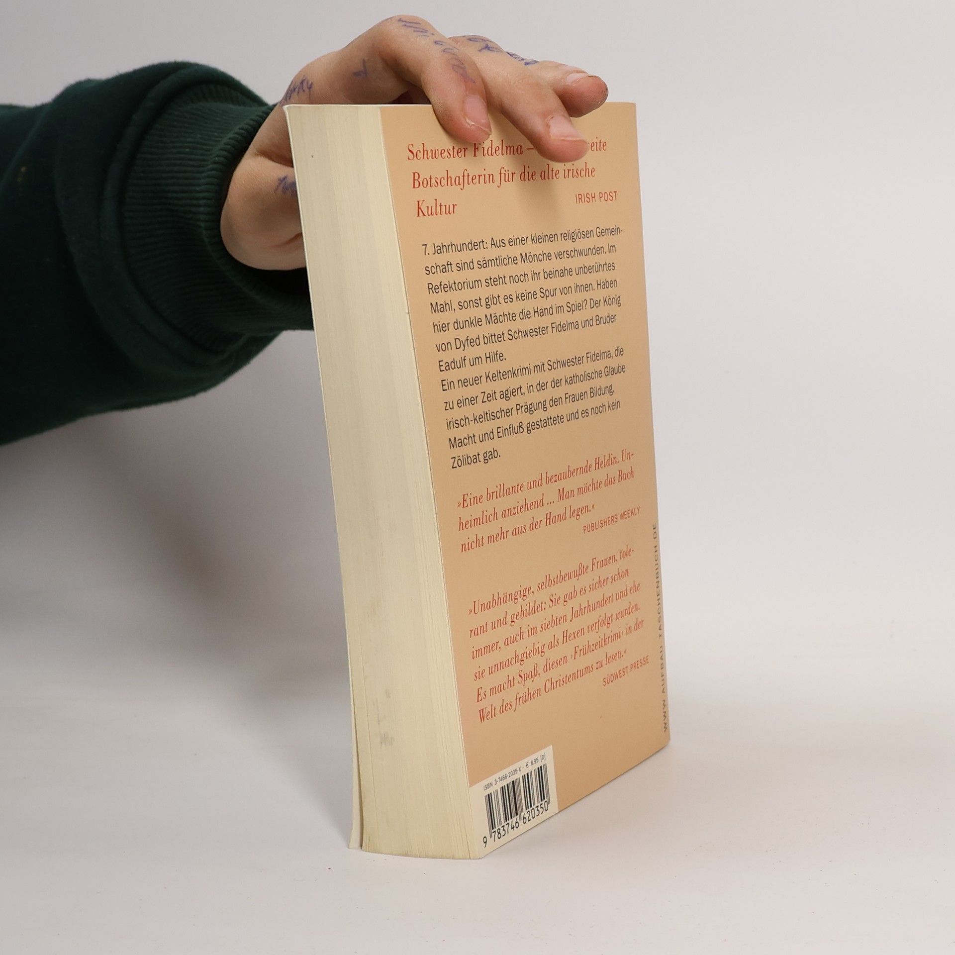 „Schwester Fidelma – eine weltweite Botschafterin für die alte irische Kultur.“ Irish Post.  7. Jahrhundert: Aus einem kleinen Kloster sind sämtliche Mönche verschwunden. Haben hier dunkle Mächte die Hand im Spiel? Der König von Dyfed bittet Schwester Fidelma um Hilfe. Ein neuer Keltenkrimi mit Schwester Fidelma, die zu einer Zeit agiert, in der der katholische Glaube irisch-keltischer Prägung den Frauen noch Bildung, Macht und Einfluß gestattete. „Eine brillante und bezaubernde Heldin. Unheimlich anziehend ... Man möchte das Buch nicht mehr aus der Hand legen.“ Publishers Weekly