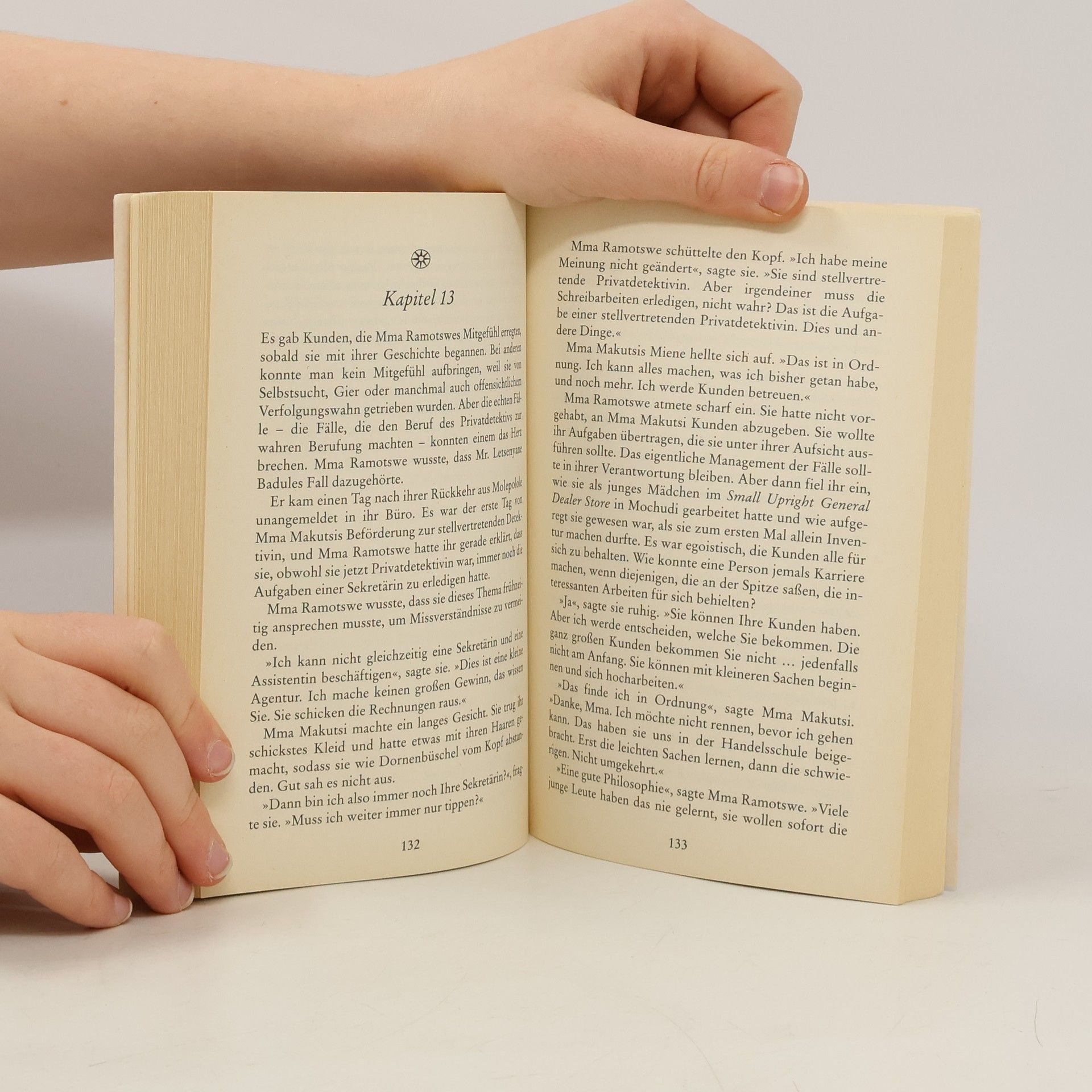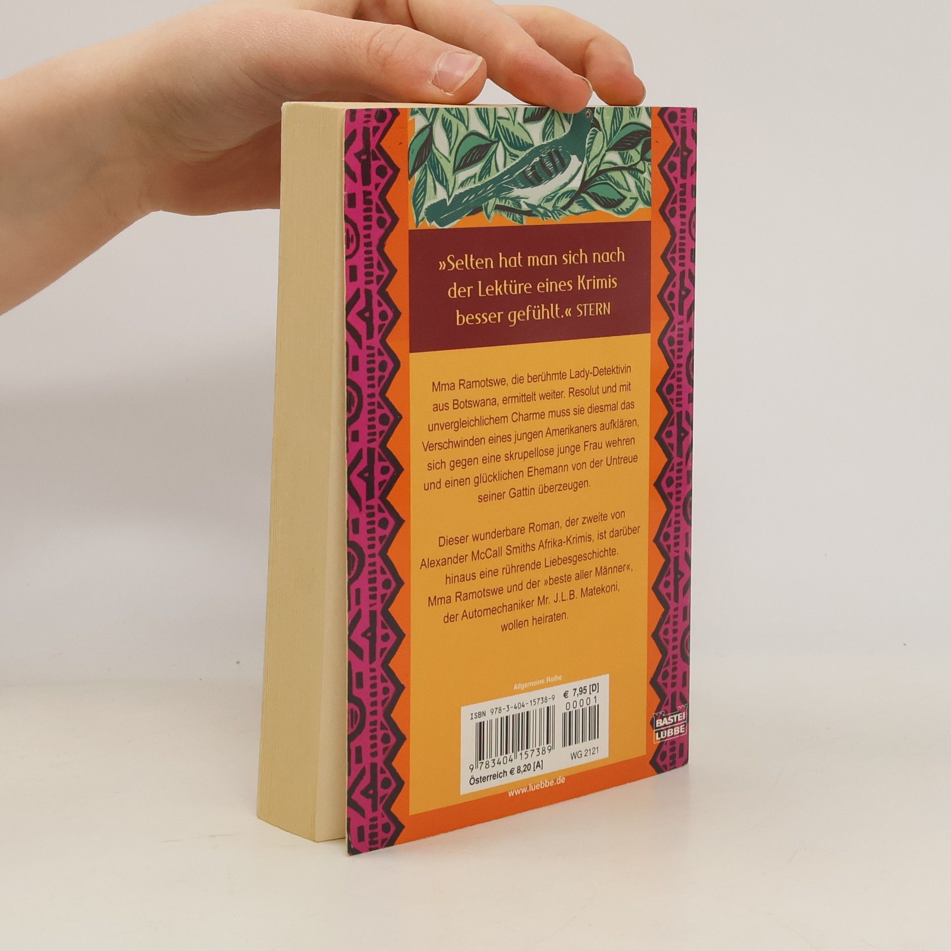 Mma Ramotswe, die inzwischen berühmte Lady-Detektivin No. 1 aus Botswana, ermittelt weiter. Resolut und mit unvergleichlichem Charme muss sie diesmal das Verschwinden eines jungen Amerikaners aufklären, sich gegen eine skrupellose junge Frau wehren und einen glücklichen Ehemann von der Untreue seiner Gattin überzeugen. Dieser wunderbare Roman, der zweite von Alexander McCall Smiths Afrika-Krimis, ist darüber hinaus eine rührende Liebesgeschichte. Mma Ramotswe und der "beste aller Männer", der Automechaniker Mr. J. L. B. Matekoni, wollen heiraten. Der zweite Roman in der weltweit erfolgreichen Serie mit Mma Ramotswe und ihrere "No. 1 Ladies' Detective Agency"