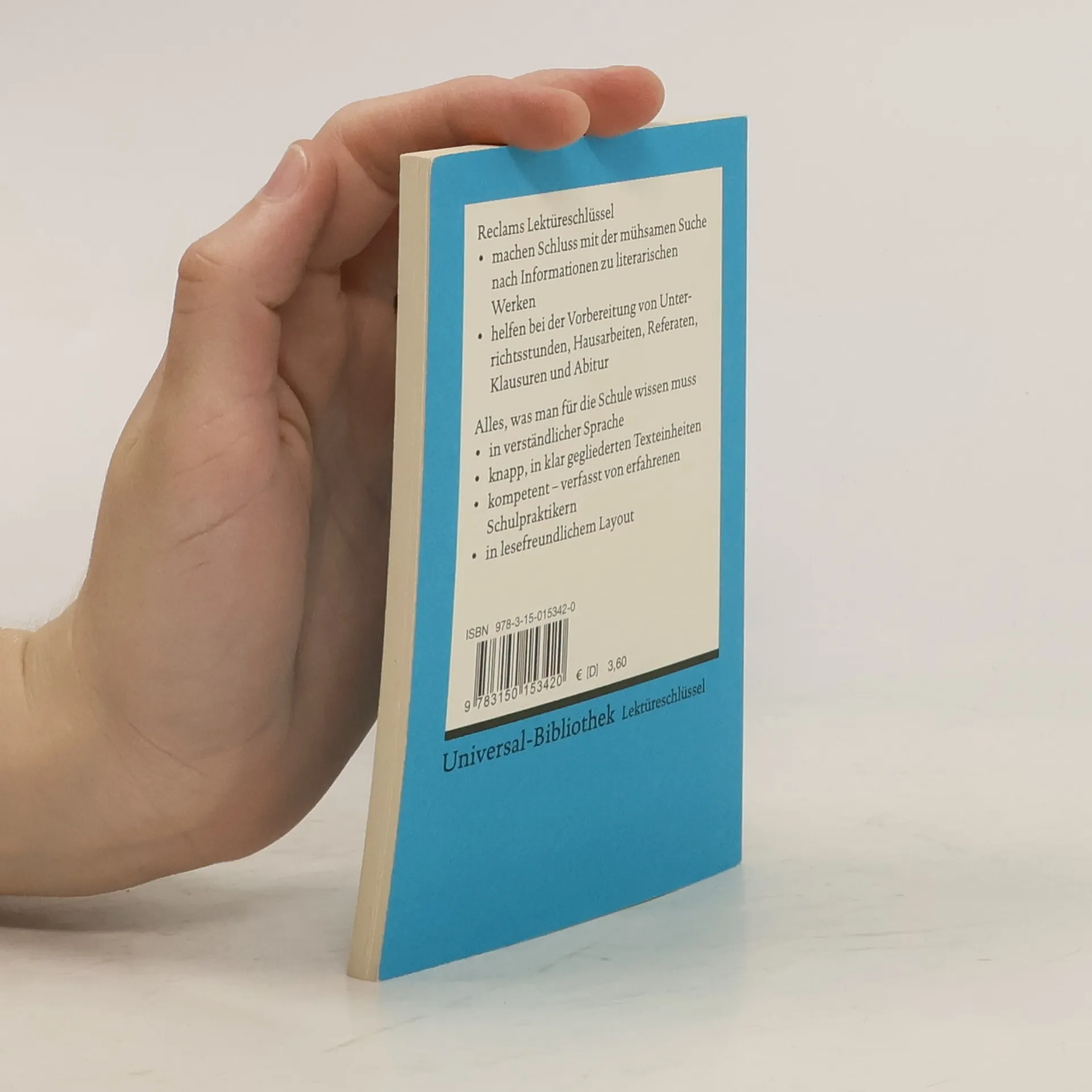 Lektüreschlüssel für Schüler erschließen einzelne literarische Werke. Um eine Interpretation als Zentrum gruppieren sich 10 wichtige Verständniszugänge: * Erstinformation zum Werk * Inhaltsangabe * Personen (Konstellationen) * Werk-Aufbau (Strukturskizze) * Wortkommentar * Interpretation * Autor und Zeit * Rezeption * „Checkliste“ zur Verständniskontrolle * Lektüretipps mit Filmempfehlungen * Raum für Notizen