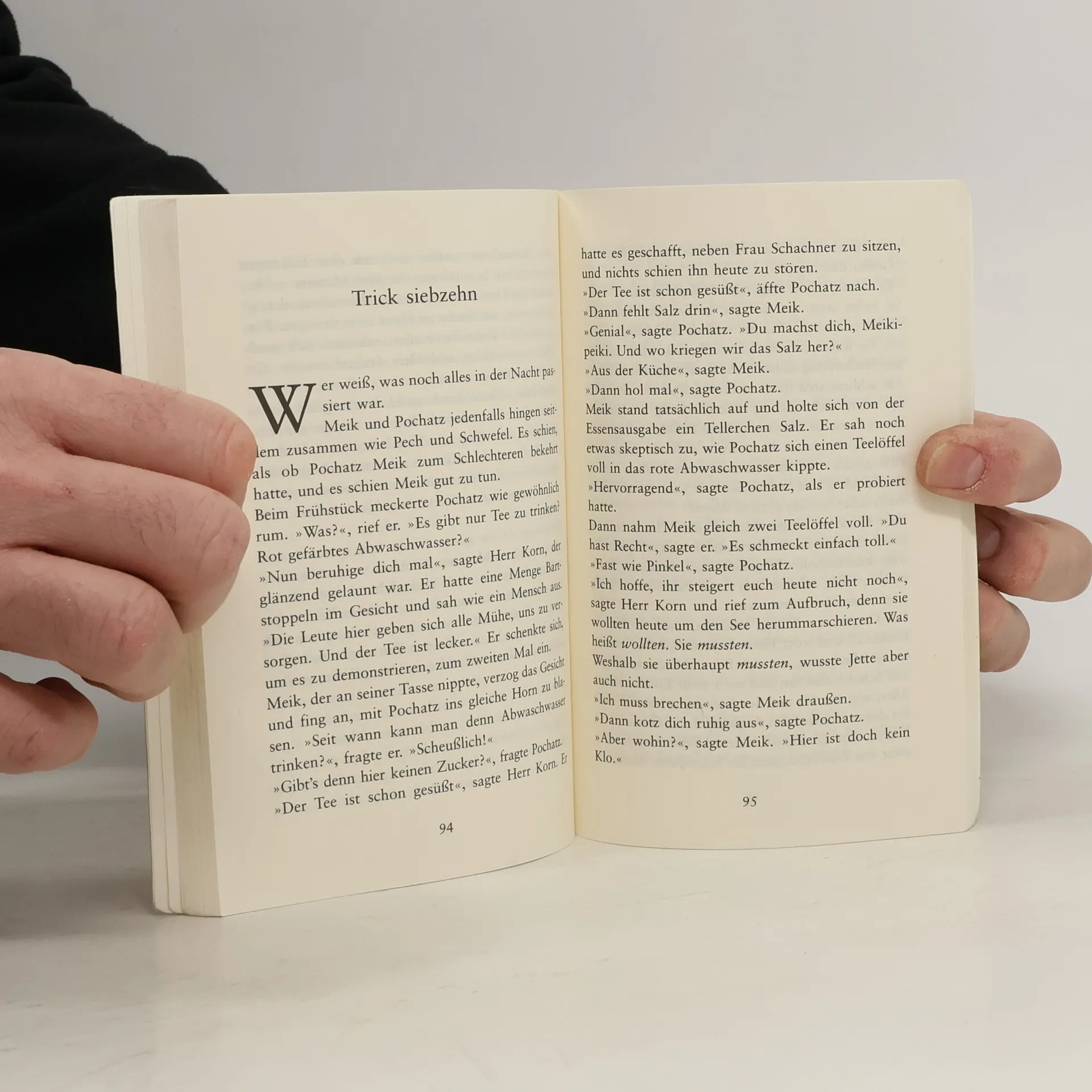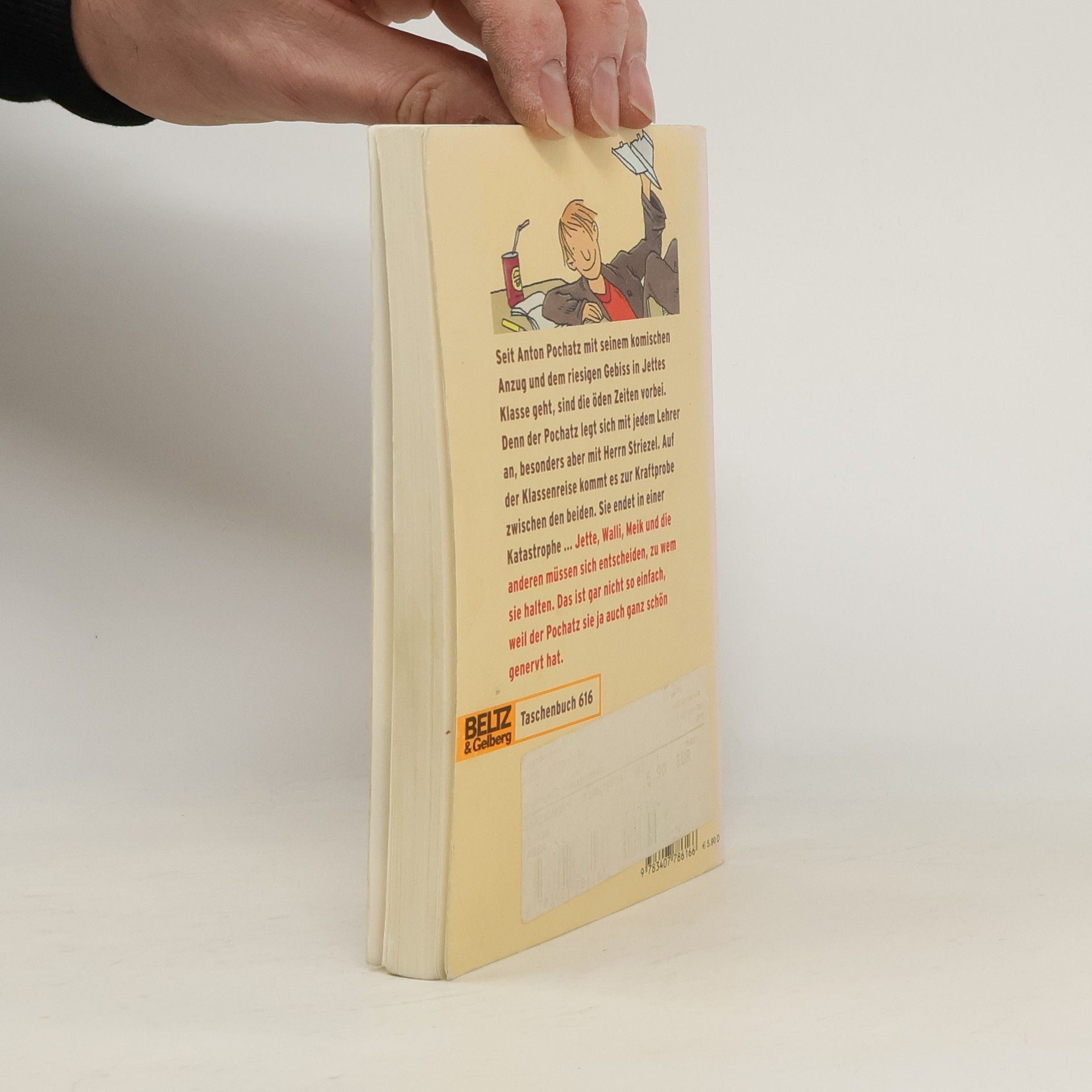 Seit Anton Pochatz mit seinem komischen Anzug und dem riesigen Gebiss, das er direkt von den Dinosauriern geerbt zu haben scheint, in ihre Klasse geht, sind die öden Zeiten vorbei. Der Pochatz legt sich ständig mit den Lehrern an, ganz besonders aber mit Herrn Striezel. Auf der Klassenreise kommt es zur Kraftprobe zwischen den beiden. Sie endet in einer Katastrophe, und die anderen müssen sich entscheiden, zu wem sie halten. Das ist gar nicht einfach, weil der Pochatz sie ja auch ganz schön genervt hat ...