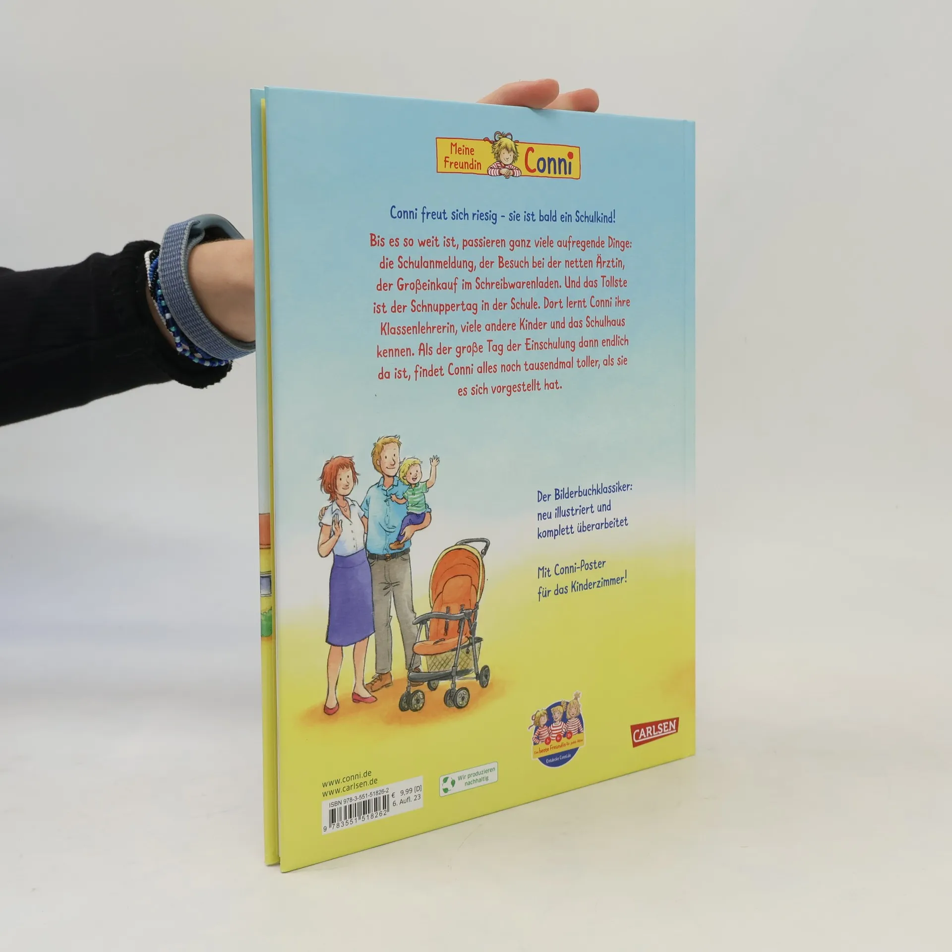***Der Bilderbuch-Klassiker: komplett überarbeitetet und neu illustriert. Mit Conni-Poster zum Aufhängen. Ein tolles Geschenk zum Schulanfang!*** Conni ist bald ein Schulkind, hurra! Bis es soweit ist, passieren ganz viele aufregende Dinge: die Schulanmeldung, der Besuch bei der netten Ärztin, der Großeinkauf im Schreibwarenladen. Aber das Beste ist der Schnuppertag, den Conni gemeinsam mit ihrer Erzieherin Hanne besucht. Dort lernt Conni ihre Klassenlehrerin, viele andere Kinder und das Schulhaus kennen. Als der große Tag der Einschulung dann endlich da ist, ist alles noch tausendmal toller als Conni es sich vorgestellt hat. Die Conni-Bilderbücher: kleine Alltagsgeschichten aus der Welt von Vorschulkindern: Thematisch dicht an der Lebenswelt von 3- bis 6-jährigen Mädchen und Jungen. Vermittlung von erstem Sachwissen aus dem Kinderalltag. Liebevoll und kindgerecht erzählt und illustriert. Zum gemeinsamen Anschauen und Lesen. Ein wunderschönes Bilderbuch, in dem Vorschulkinder erfahren, was sie an ihrem ersten Schultag erwartet.