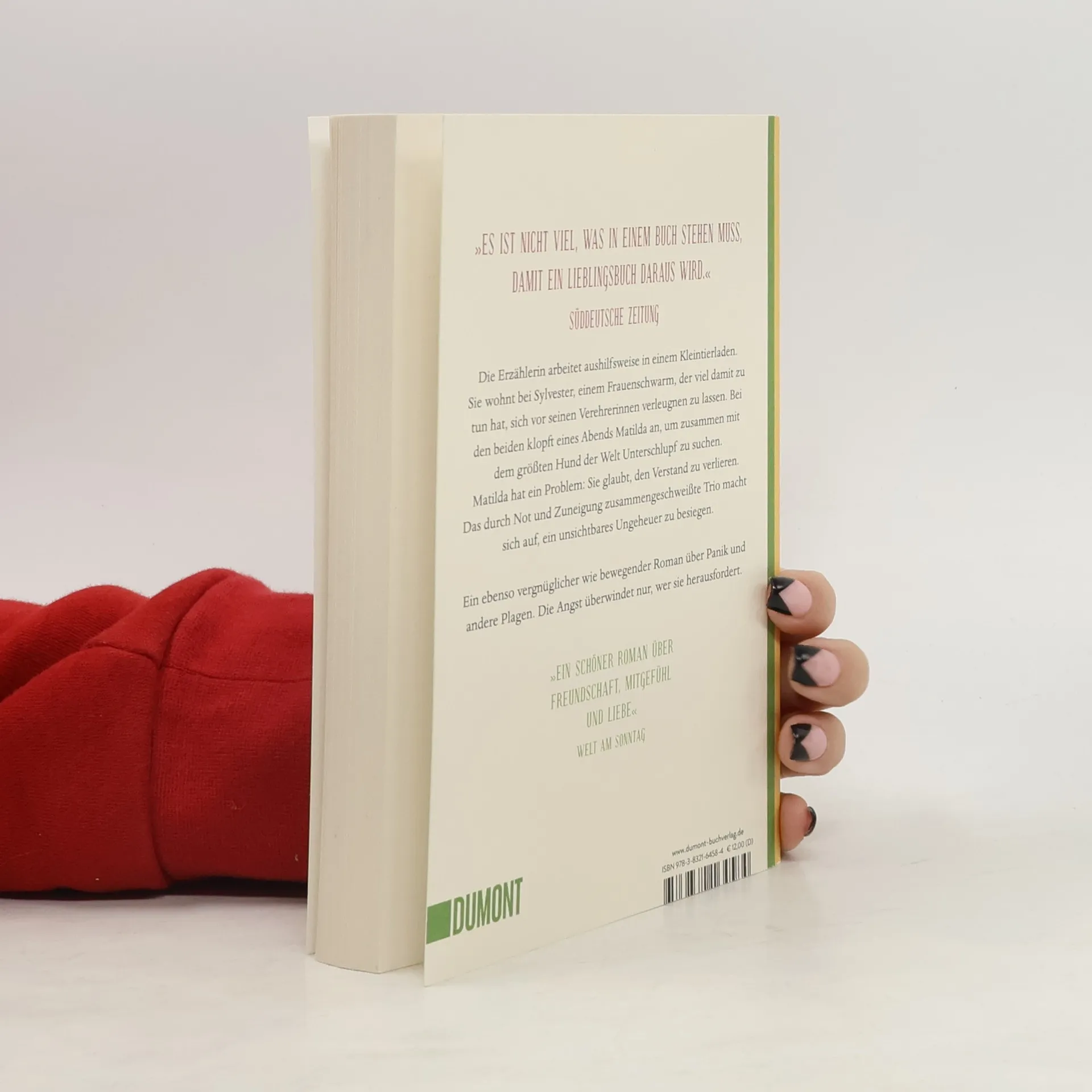 Die Erzählerin arbeitet aushilfsweise in einem Kleintierladen. Sie wohnt bei Sylvester, einem Frauenschwarm, der viel damit zu tun hat, sich vor seinen Verehrerinnen verleugnen zu lassen. Bei den beiden klopft eines Abends Matilda an, um zusammen mit dem größten Hund der Welt Unterschlupf zu suchen. Matilda hat ein Problem: Sie glaubt, den Verstand zu verlieren. Das durch Not und Zuneigung zusammengeschweißte Trio macht sich auf, ein unsichtbares Ungeheuer zu besiegen. Mariana Leky gelingt es, diesen Kampf gegen schwindelerregende Windmühlenflügel klingen zu lassen wie eine Filmkomödie: ein ebenso vergnüglicher wie bewegender Roman über Panik und andere Plagen. Die Angst überwindet nur, wer sie herausfordert.