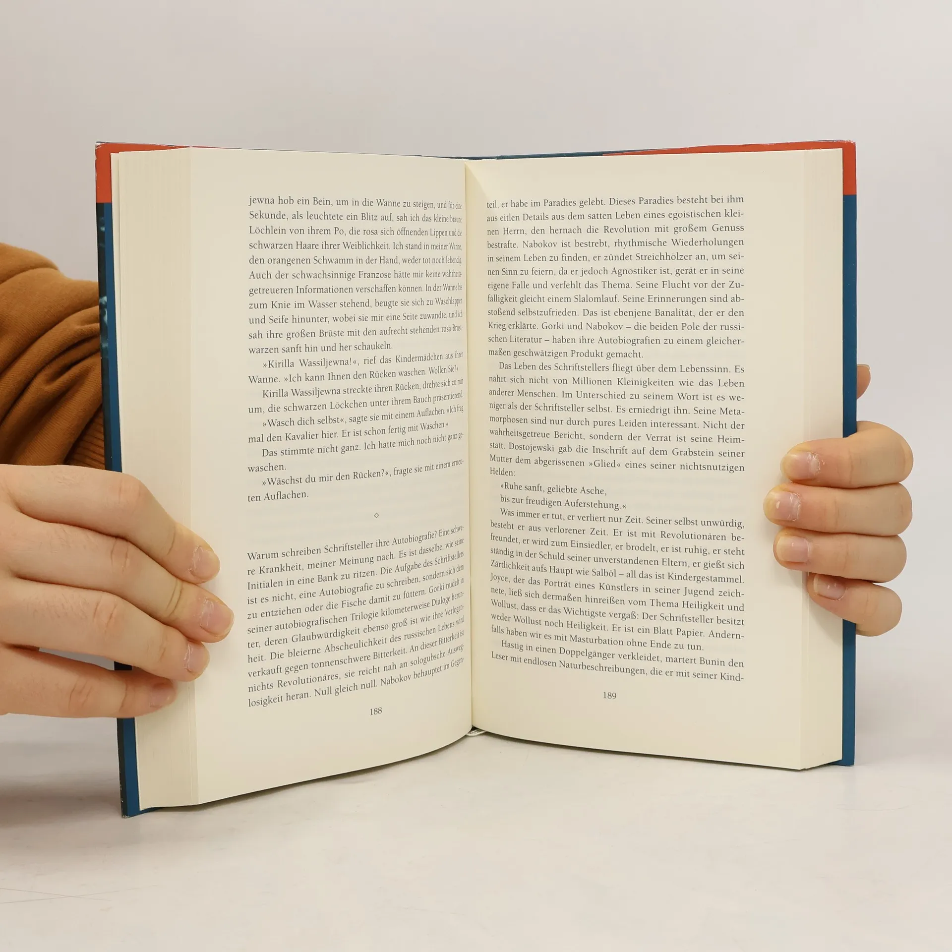 „Papa arbeitete im Kreml. Was er da eigentlich machte, wusste ich nicht so genau, aber wenn ich mit meinen Freunden am Kreml vorbeifuhr (im Winter bis über die Nase in Schals gehüllt, in Biberlammpelzen, Mützen, Filzstiefeln und mit Schäufelchen ausgerüstet, um im Gorki-Park im Schnee zu spielen), dann sagte ich sachkundig zu ihnen: , Hier arbeiten mein Papa und Genosse Stalin.‘“ Viktor Jerofejew wuchs im Herzen der politischen Macht auf, sein Vater gehörte zum Stalinschen Hofstaat, er war Berater und Dolmetscher, später Botschafter im westlichen Ausland. Die Welt der geknechteten Herren, gesättigt und privilegiert, wird mit melancholischem Spott porträtiert. Zugleich wird der Blick des Kindes gewahrt, das nicht anders kann, als seinen Vater zu lieben, und mit ihm die Umgebung, in der es heranwächst. Kindliche Sicht und historisches Wissen sind die Pole der Wahrnehmung, zwischen denen dieser Text oszilliert und aus denen er seine Spannung bezieht. Letztlich aber ist dieser eindrucksvolle Roman die Geschichte der Geburt eines Schriftstellers und Dissidenten, die Geschichte des Triumphs der künstlerischen, der schöpferischen Freiheit – dank des politischen Mordes an seinem Vater wurde der Autor paradoxerweise ein freier Mensch. Die Tatsache, dass ihm eben jener „Ermordete“ zur Seite steht, als die politische Verfolgung einsetzt, zeugt wiederum von der menschlichen Größe der Protagonisten dieses literarischen Zeitzeugnisses.