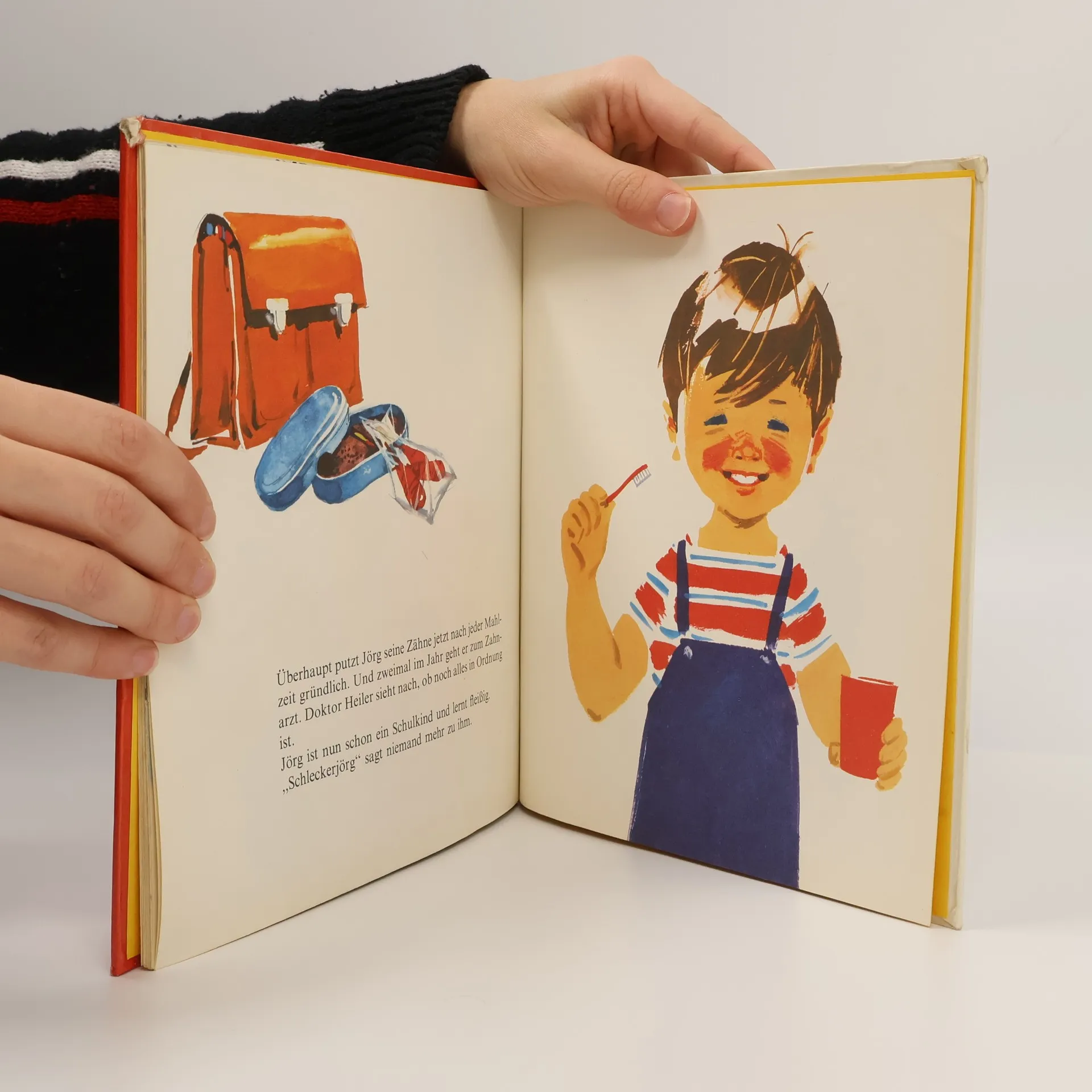 Da sich der Jörg die Zähne nicht richtig putzt und schrecklich gerne und viel Süßigkeiten isst, bekommt er bald scheußliche Zahnschmerzen und muss zum Zahnarzt. Dort wird ihm geholfen, und er lernt, sich die Zähne zu putzen und nicht alles Geld für Schokolade und Bonbons auszugeben. In der alten, beliebten Fassung.