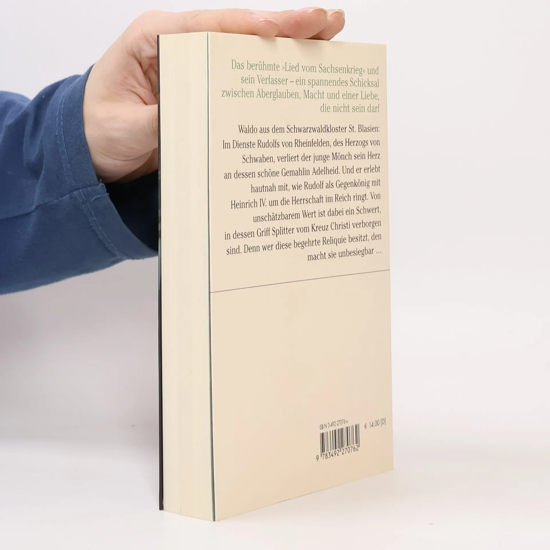 11. Jahrhundert, eine Epoche erbitterter Machtkä Als der junge Mönch Waldo dem mächtigen Rudolf von Rheinfelden, Herzog von Schwaben, im Kloster St. Blasien zum ersten Mal begegnet, ahnt keiner der beiden, dass ihr Schicksal über viele Jahre und blutige Schlachten hinweg eng miteinander verwoben sein wird. Rudolf von Rheinfelden, Schwager von König Heinrich IV., wird vom Vertrauten des Königs zum mächtigsten Gegner Heinrichs IV., zum Führer der Opposition der Fürsten.Als Heinrich exkommuniziert wird und seinen Bittgang zum Papst nach Canossa antreten muss, wählen die Fürsten des Reichs den Herzog von Schwaben zum Gegenkönig. Waldo, der Mönch, verliert sein Herz auf den ersten Blick an Adelheid, die strahlend schöne Gemahlin des Schwabenherzogs. Noch etwas verbindet diese beiden ungleichen Mä ein geheimnisvolles Schwert, in dessen Griff Splitter vom Kreuz Jesu versteckt sein sollen.