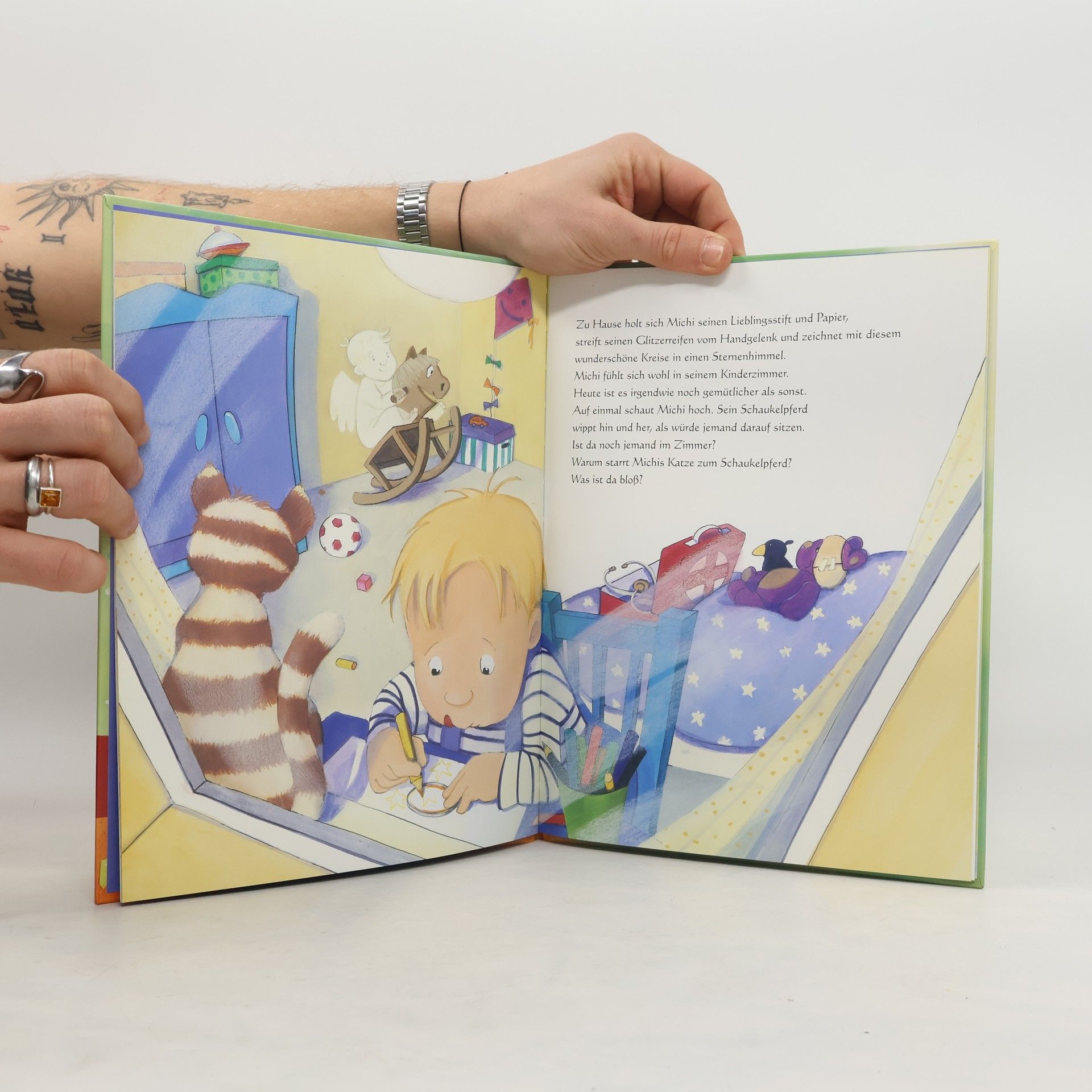 Michi wacht mitten in der Nacht auf, weil ihn etwas am Arm berührt ... Das ist sein Schutzengel - jedes Kind hat einen - nur Michi kann seinen sehen. Ab 3.