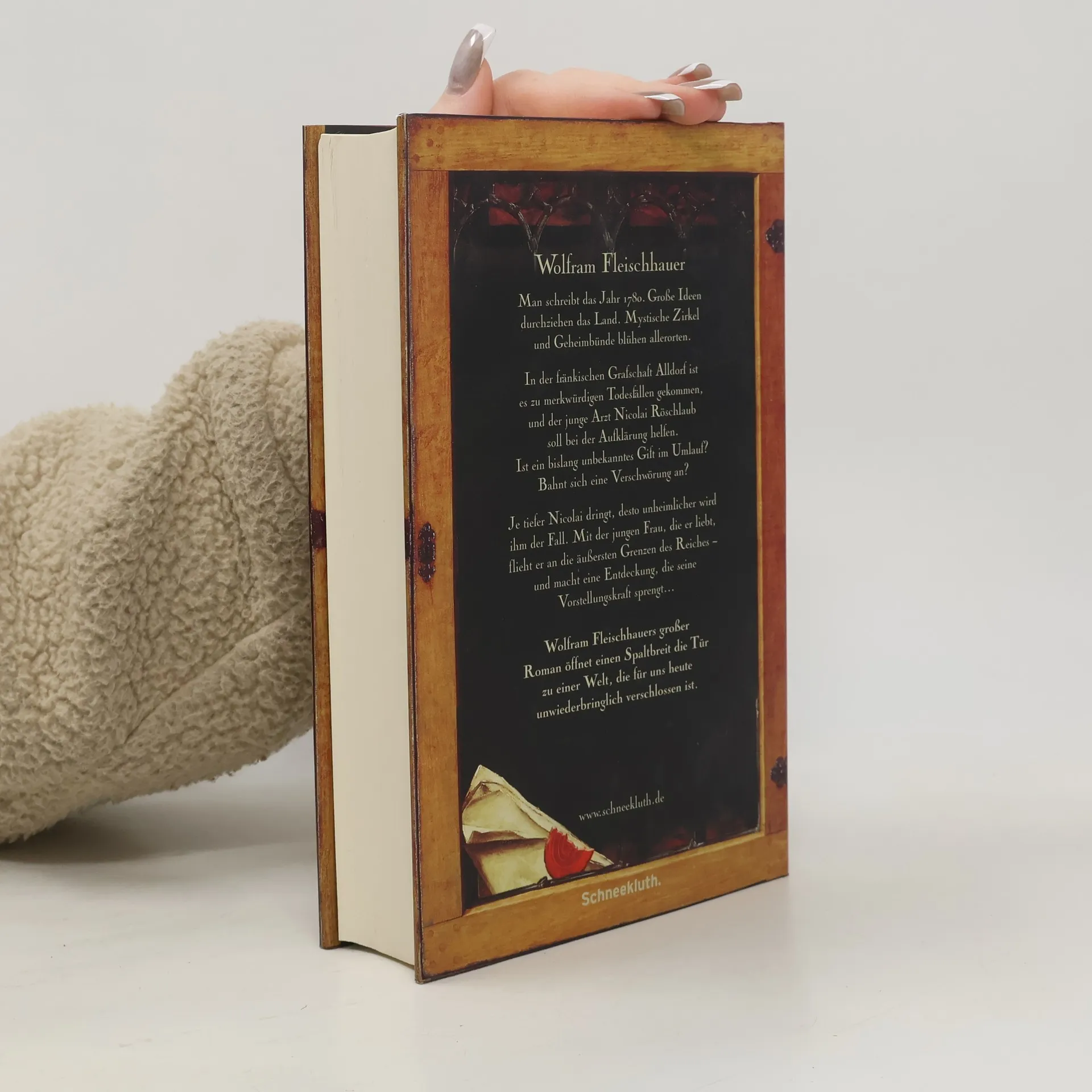 In einem verschneiten fränkischen Wald macht der Lizenziat Nicolai Röschlaub eine schreckliche Entdeckung: eine blutüberströmte Leiche ohne Hände und mit entstelltem Gesicht. Der grausigste Anblick sind die Augen des Toten, die der Mörder an einen Baum gespießt hat, mit der eingravierten Mahnung: "In te ipsum redi -- Schaue in Dich selbst!" Einzige Zeugin ist eine geheimnisvolle, verführerische junge Frau, in die Nicolai sich immer mehr verliebt. Doch sie ist nicht das einzige Rätsel, das sich der Aufklärung des Falls entgegenstellt. Der dubiose Justizrat Di Tassi, der Nicolai anheuert, arbeitet für Machthaber mit undurchsichtigen Motiven und ist nur einer von vielen Akteuren, die im späten 18. Jahrhundert um die Herrschaft im Deutschen Reich kämpfen. Während Nicolai versucht, das Geheimnis der Unbekannten zu lüften, gerät er tiefer in den Strudel von Gewalt und dem Konflikt zwischen Aufklärung und Gegenaufklärung, in dessen Zentrum ein Buch steht, das ein neues Zeitalter einleitet und eine alte Welt zum Verschwinden bringt. Wolfram Fleischhauer nutzt in seinem vierten Roman die Mittel des historischen Romans, um eine spannende und intelligent konstruierte Handlung zu entwickeln. Trotz der bekannten Themen von Aufklärung, feudalistischer Unterdrückung und religiösem Fanatismus gelingt es ihm, überraschende Aspekte herauszuarbeiten. Fleischhauer erweist sich als Meister präziser Effekte und assoziativer Dichte, voll Anspielunge