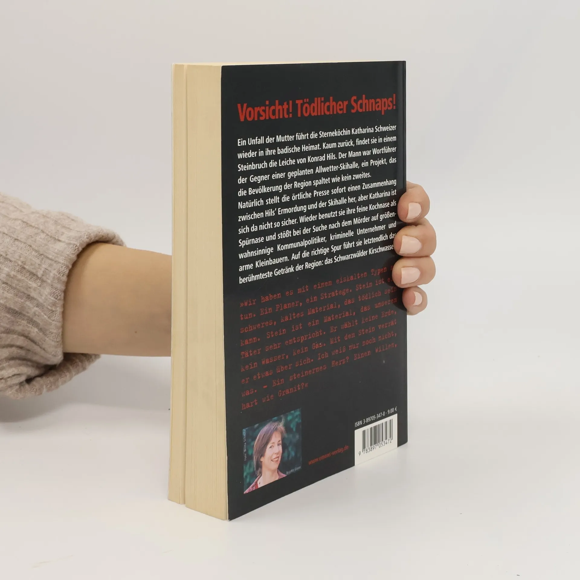 Ein Unfall der Mutter führt die Sterneköchin Katharina Schweitzer wieder in ihre badische Heimat. Kaum zurück, findet sie in einem Steinbruch die Leiche von Konrad Hils. Der Mann war Wortführer der Gegner einer geplanten Allwetter-Skihalle, ein Projekt, das die Bevölkerung der Region spaltet wie kein zweites. Natürlich stellt die örtliche Presse sofort einen Zusammenhang zwischen Hils' Ermordung und der Skihalle her, aber Katharina ist sich da nicht so sicher. Wieder benutzt sie ihre feine Kochnase als Spürnase und stößt bei der Suche nach dem Mörder auf größenwahnsinnige Kommunalpolitiker, kriminelle Unternehmer und arme Kleinbauern. Auf die richtige Spur führt sie letztendlich das berühmteste Getränk der Region: das Schwarzwälder Kirschwasser.