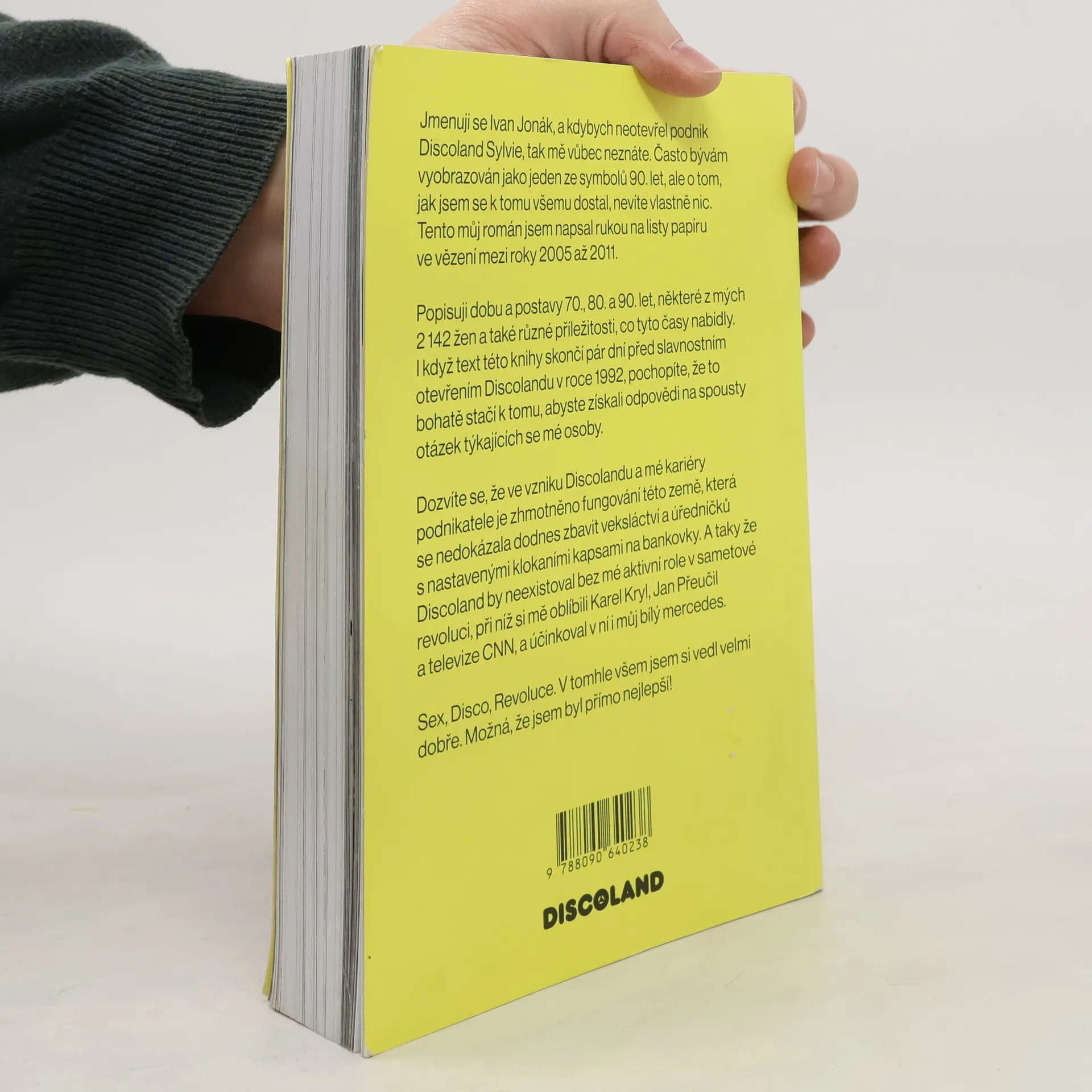 Rukopis Ivana Jonáka vznikal mezi lety 2005 a 2011 během jeho věznění za nájemnou vraždu manželky. V knize, nazvané Jmenuji se Ivan Jonák, se představuje nejen jako provozovatel legendárního Discolandu Sylvie, ale také jako symbol divokých 90. let a bouřlivého počátku podnikání v Česku. Vypráví svůj příběh plný absurdit a nečekaných zvratů, který sahá do 70., 80. a 90. let, a popisuje postavy i příležitosti, které formovaly jeho život. I když kniha končí krátce před otevřením Discolandu v roce 1992, nabízí mnoho odpovědí na otázky týkající se Jonákovy osoby a odhaluje, jak sex, politika a podnikání ovlivňovaly tehdejší společnost. Vypráví o tom, jak se tato „pološílená země“ nedokázala zbavit veksláctví a úředníků s kapsami nastavenými na úplatky, a zdůrazňuje svou roli během sametové revoluce, kdy se spřátelil s Karlem Krylem a jeho bílý mercedes byl svědkem historických událostí. Sex, disco a revoluce – v tomhle všem Jonák exceloval.
