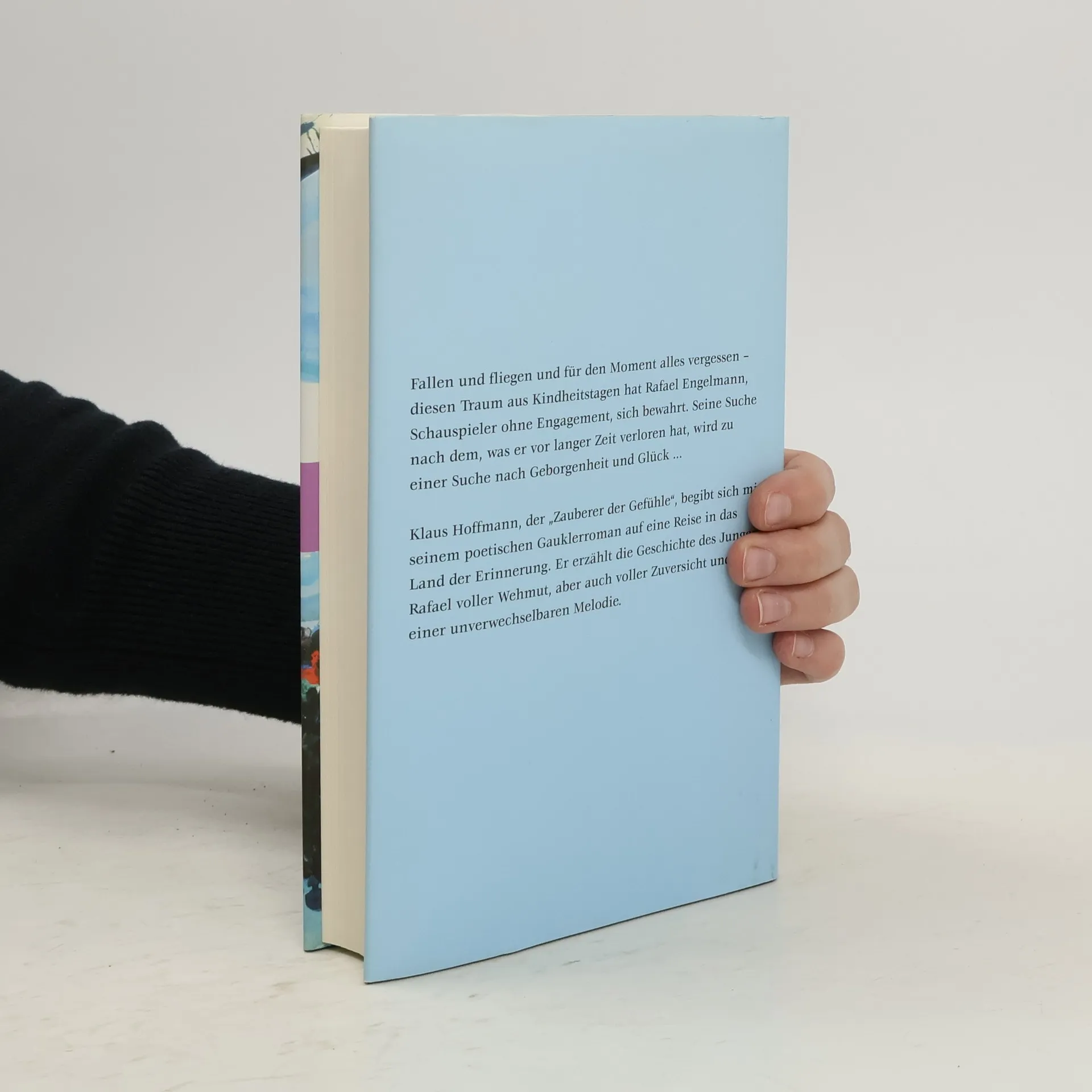 Fallen und fliegen und für den Moment alles vergessen. Diesen Traum aus Kindheitstagen hat Rafael Engelmann, Schauspieler ohne festes Engagement, sich bewahrt. In seine Einsamkeit gehüllt wie in einen Mantel, begibt er sich auf die Suche nach dem, was er vor langer Zeit verloren hat - auf die Suche nach Geborgenheit und Glück. Er durchstreift die Stätten seiner Kindheit, begegnet Menschen, die er einst kannte, und lernt andere kennen, die wie der Clown Kroll sein Leben nachhaltig beeinflussen werden. Mit seinem zweiten Roman hat sich Klaus Hoffmann, der erfolgreiche Sänger und Schauspieler, der „Zauberer der Gefühle“, auf eine Reise in das Land der Erinnerung begeben, ein Weg, der schmerzhaft ist, weil voller Aufrichtigkeit, und tröstlich, weil voller Liebe. Und unversehens gelingt ihm mit seinem poetischen Gauklerroman auch eine Liebeserklärung an seine Heimatstadt Berlin.
