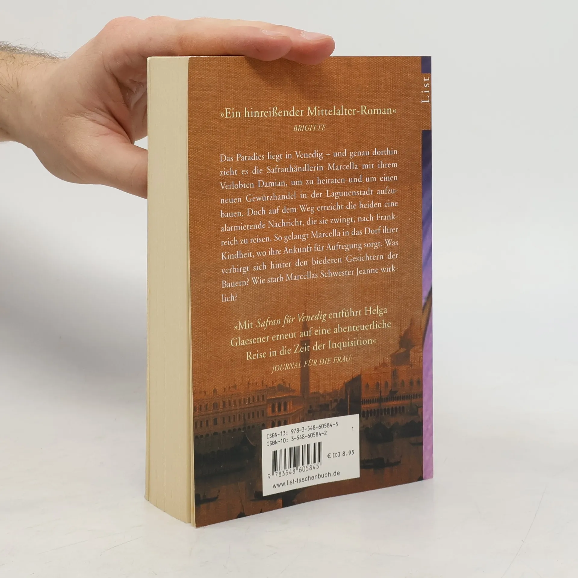 Das Paradies liegt in Venedig, und die Safranhändlerin Marcella zieht mit ihrem Verlobten Damian dorthin, um zu heiraten und einen neuen Gewürzhandel aufzubauen. Doch eine alarmierende Nachricht zwingt sie, nach Frankreich zu reisen. In ihrem Heimatdorf, wo ihre Ankunft für Aufregung sorgt, stellt sich die Frage, was hinter den biederen Gesichtern der Bauern steckt und wie Marcellas Schwester Jeanne wirklich starb. Im Herbst 1327 sind Marcella und Damian auf dem Weg nach Venedig, als Damian erfährt, dass sein Handelskontor in Narbonne massive Verluste erleidet. Er überredet Marcella, ihn nach Frankreich zu begleiten, um die Situation zu klären. Bald wird klar, dass er keinem seiner Mitarbeiter trauen kann. Ein frommer Bürger stirbt unerwartet, und die Suche nach dem Betrüger und Mörder führt das Paar in Marcellas Heimatdorf, das sie einst hastig verlassen musste. Bei ihren Nachforschungen über Jeanne stoßen sie auf eine Mauer des Schweigens. Als ihre alte Amme, die möglicherweise wichtige Informationen hat, im Badehaus ermordet wird, gerät auch Damian in Lebensgefahr. In ihrem ehemaligen Elternhaus erkennt Marcella schließlich, wer die Fäden zog – jemand, der vor nichts zurückschreckt.