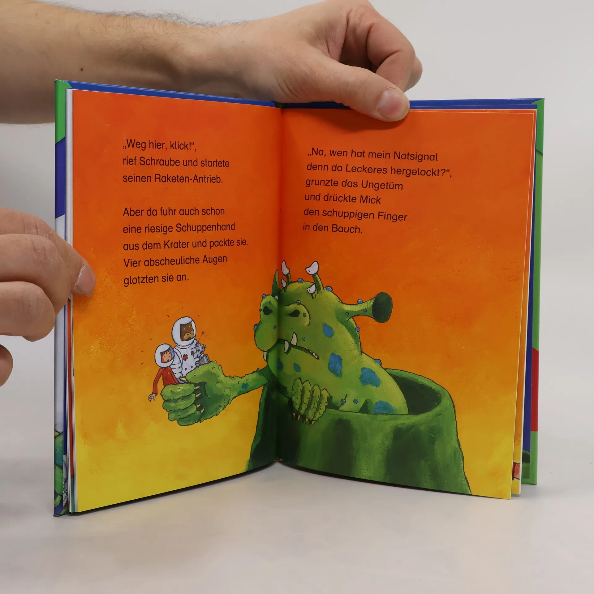 Auf in die weite Welt! Mick und Mo düsen ins All Notruf vom Planeten Borus! Mick und sein Stoffgorilla Mo nehmen mit ihrem Raumschiff Kurs auf den Zwergenplanet. Doch als sie endlich da sind, ist die Landung zwischen all den rauchenden Vulkanen noch das kleinste Problem …