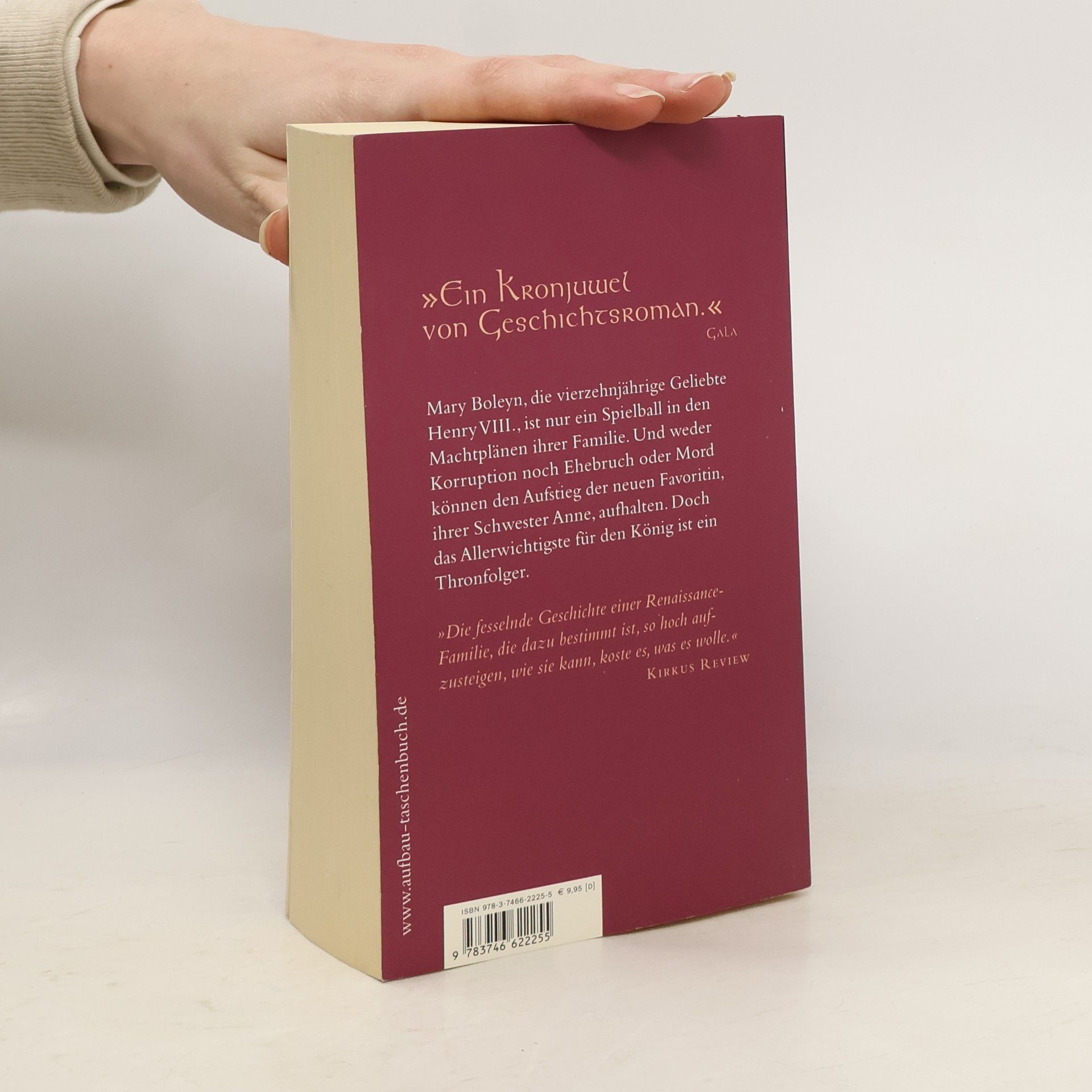 „Ein Kronjuwel von Geschichtsroman.“ Gala Mary Boleyn, die vierzehnjährige Geliebte Henry VIII., ist nur ein Spielball in den Machtplänen ihrer Familie. Und weder Korruption noch Ehebruch oder Mord können den Aufstieg der neuen Favoritin, ihrer Schwester Anne, aufhalten. Doch das Allerwichtigste für den König ist ein Thronfolger. „Die fesselnde Geschichte einer Renaissance-Familie, die dazu bestimmt ist, so hoch aufzusteigen, wie sie kann, koste es, was es wolle.“ Kirkus Review