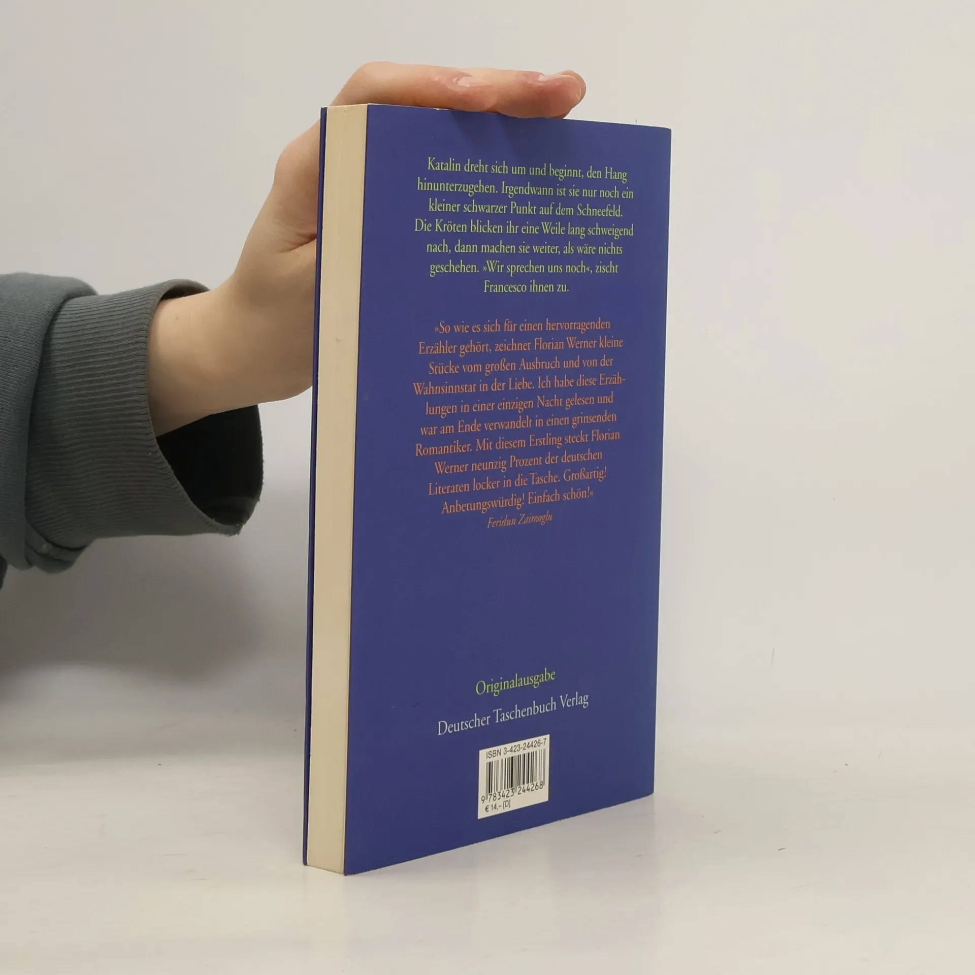 Zehn Erzählungen über Mythen und Mysterien des Alltags. »Großartig! Anbetungswürdig! Einfach schön!« Feridun Zaimoglu Zart fängt es an oder mit einem Knall. Später dann, wenn die gemeinsam befahrenen Gewässer längst nicht mehr neutral sind, ist es vielleicht so wie bei Francesco und Katalin in ›Pappschnee‹: ein Kontaktaufnahmeversuch jagt den anderen, sie senden Zeichen, berühren sich, sagen etwas, aber finden nicht die Worte für das, worüber sie eigentlich reden sollten. Es geht um Paare in Florian Werners erstem Erzählungsband, um das, was unter der Oberfläche brodelt, in dieser allen Temperaturschwankungen unterliegenden Zone zwischen Himmel und Hölle, Teufel und Gott, Dur und Moll, heiß und kalt. In ›Kleiner Apfel‹ versuchen Maja und Bastian da herauszukommen, indem sie die Mauer wieder aufbauen wollen, doch die zischelnde Schlange, die es sich längst auf ihren Seelen bequem gemacht hat wie einst auf Evas Baum, taucht immer wieder auf und hinterlässt ihre feuchtwarmen, höllischen Spuren. Rhythmisch, gleich einem Sprechgesang umkreist Florian Werner in diesen 13 Augenblicken gleichenden Geschichten die unendliche Unfähigkeit, über das Unaussprechliche zu reden, und die archaische Angst, sich für immer zu verbrennen. Ja, wir sprechen uns noch – trotz der schrecklichen Hitze da unten.