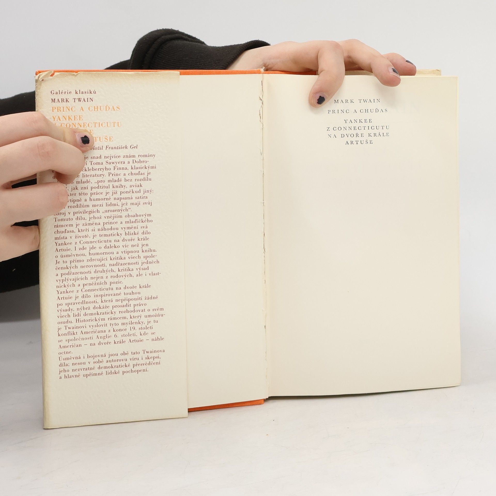 Princ a chuďas : příběh, v němž náhoda svede dohromady dva chlapce, podobné si jako vejce vejci, a způsobí tak v jejich životě zásadní změnu, se odehrává v Anglii v době panování Jindřicha VIII. Yankee z Connecticutu na dvoře krále Artuše: Slavný příběh z pera jednoho z nejznámějších amerických autorů 19. století. Yankee z Connecticutu na dvoře krále Artuše se dočkal i mnoha více či méně úspěšných televizních zpracování. Jádro příběhu je velmi jednoduché. Inteligentní americký mladík pocházející z Ameriky konce 19. století se ocitá v Anglii 6. století, na dvoře bájného krále Artuše. Mladík odkojený dobou prudkého rozmachu vědy a techniky pak své znalosti využívá v prospěch svůj i svého okolí a potírá tak tehdejší tmářství, bídu a krutost. Mark Twain rozehrává celou řadu humorných situací, ovšem s vážnějším podtextem, ve kterém se moudrý satirik zamýšlí nad zneužitím moci i postavením člověka ve společnosti.