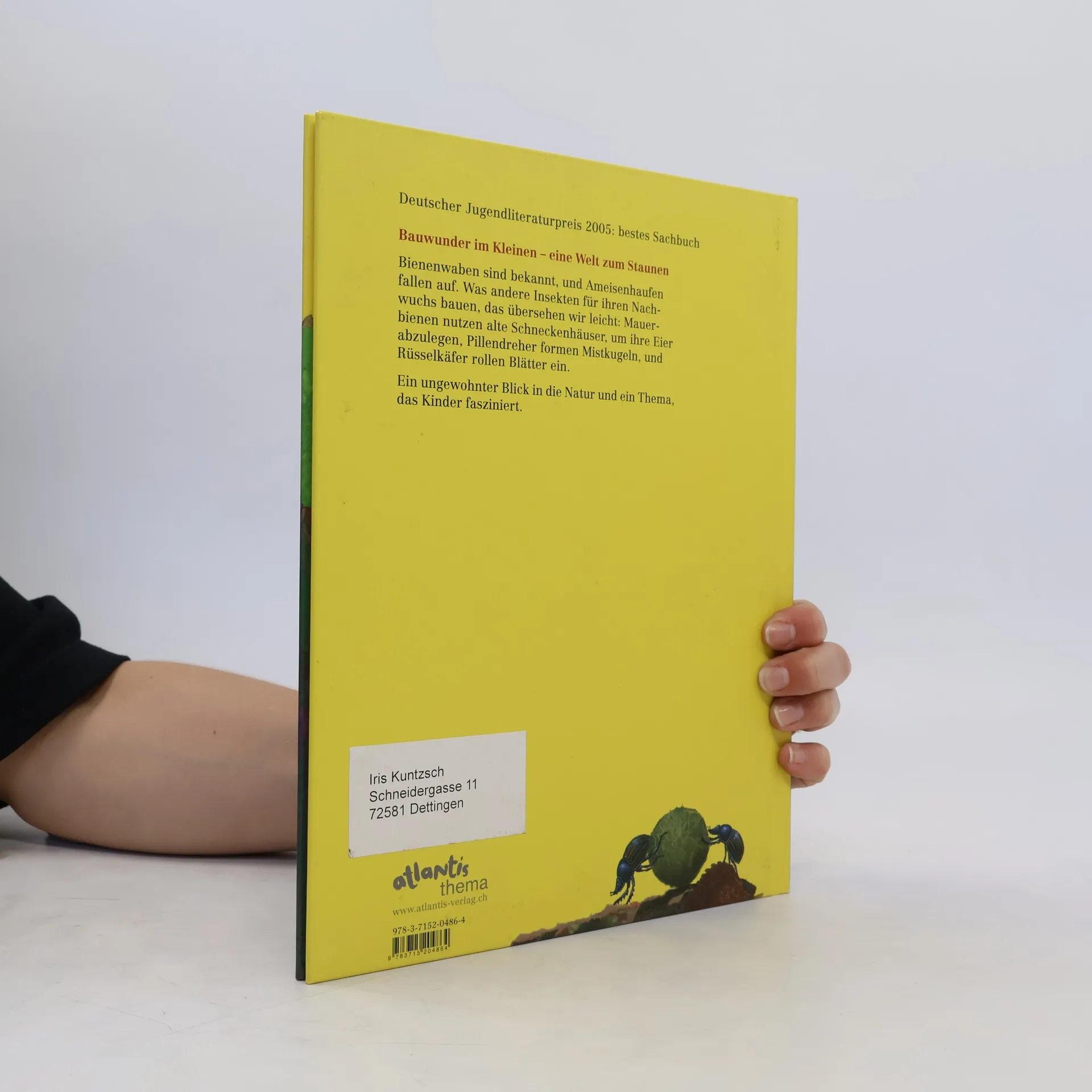 Ausgezeichnet mit dem Deutschen Jugendliteraturpreis 2005, Kategorie Sachbuch JURYBEGRÜNDUNG: Die Zigarrenwickler rollen Blätter ein, um ihre Eier abzulegen, die Pillendreher formen Mistkugeln, die Mauerbienen nutzen leere Schneckenhäuser: Einige Insektenarten sind überaus findig, wenn es darum geht, den Nachwuchs zu schützen, und dabei schaffen sie höchst kunstvolle Nestbauten. Anne Möller stellt in ihrem ästhetisch anspruchsvollen Sachbilderbuch einige dieser Krabbeltiere vor. In der Reduktion auf das selten bearbeitete Thema »Nestbau von Insekten« hebt sie sich von anderen Werken ab. Sie beschreibt detailgenau und prägnant, wie das jeweilige Insekt vorgeht und zeigt das Schritt für Schritt in Bild und Text. Mit einem ganzseitigen Aufrissbild gewährt sie einen Blick ins fertige Nest. Die grossflächigen und fein gestalteten Collagen - Möller verwendet gerissene Papiere und malt - sind von bestechender Schönheit und Anschaulichkeit. Die Autorin lässt den Betrachter teilhaben an ihren Naturbeobachtungen und weckt in ihm die Lust, sich selber forschend zu betätigen und den Dingen auf den Grund zu gehen.