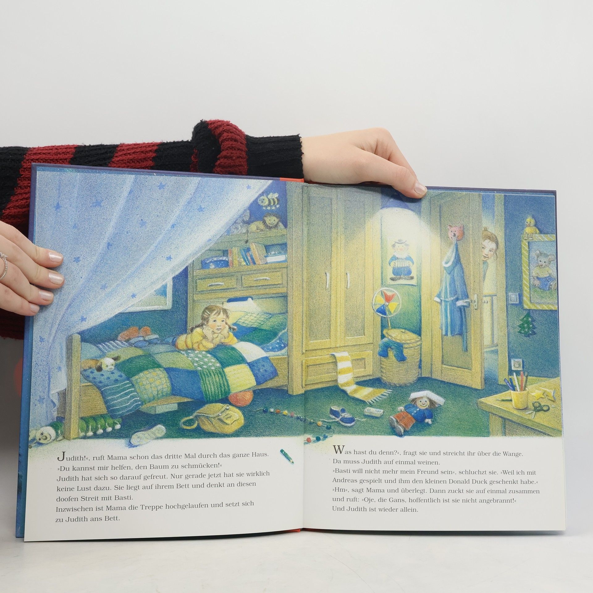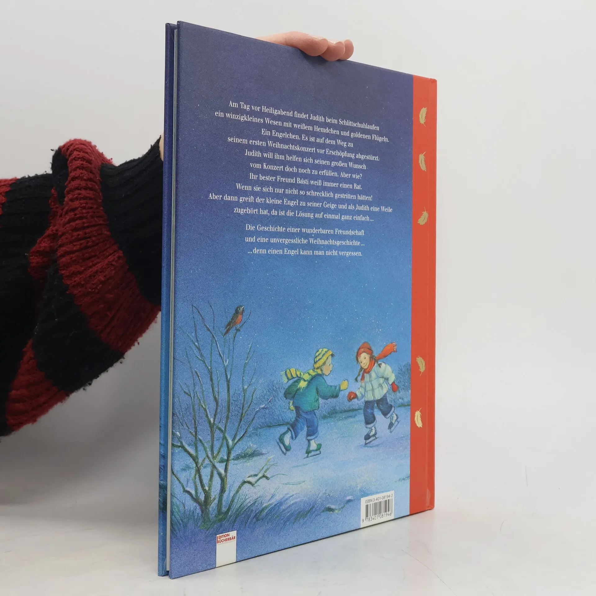 Am Tag vor Heiligabend findet Judith beim Schlittschuhlaufen ein winzigkleines Wesen mit weißem Hemdchen und goldenen Flügeln. Ein Engelchen. Es ist auf dem Weg zu seinem ersten Weihnachtskonzert vor Erschöpfung abgestürzt. Judith will ihm helfen, sich seinen großen Wunsch vom Konzert doch noch zu erfüllen. Aber wie? Ihr bester Freund, Basti, weiß immer einen Rat. Wenn sie sich nur nicht so schrecklich gestritten hätten! Aber dann greift der kleine Engel zu seiner Geige und als Judith eine Weile zugehört hat, da ist die Lösung auf einmal ganz einfach ... Die magischen Bilder des Buches verzaubern Betrachter jeden Alters.