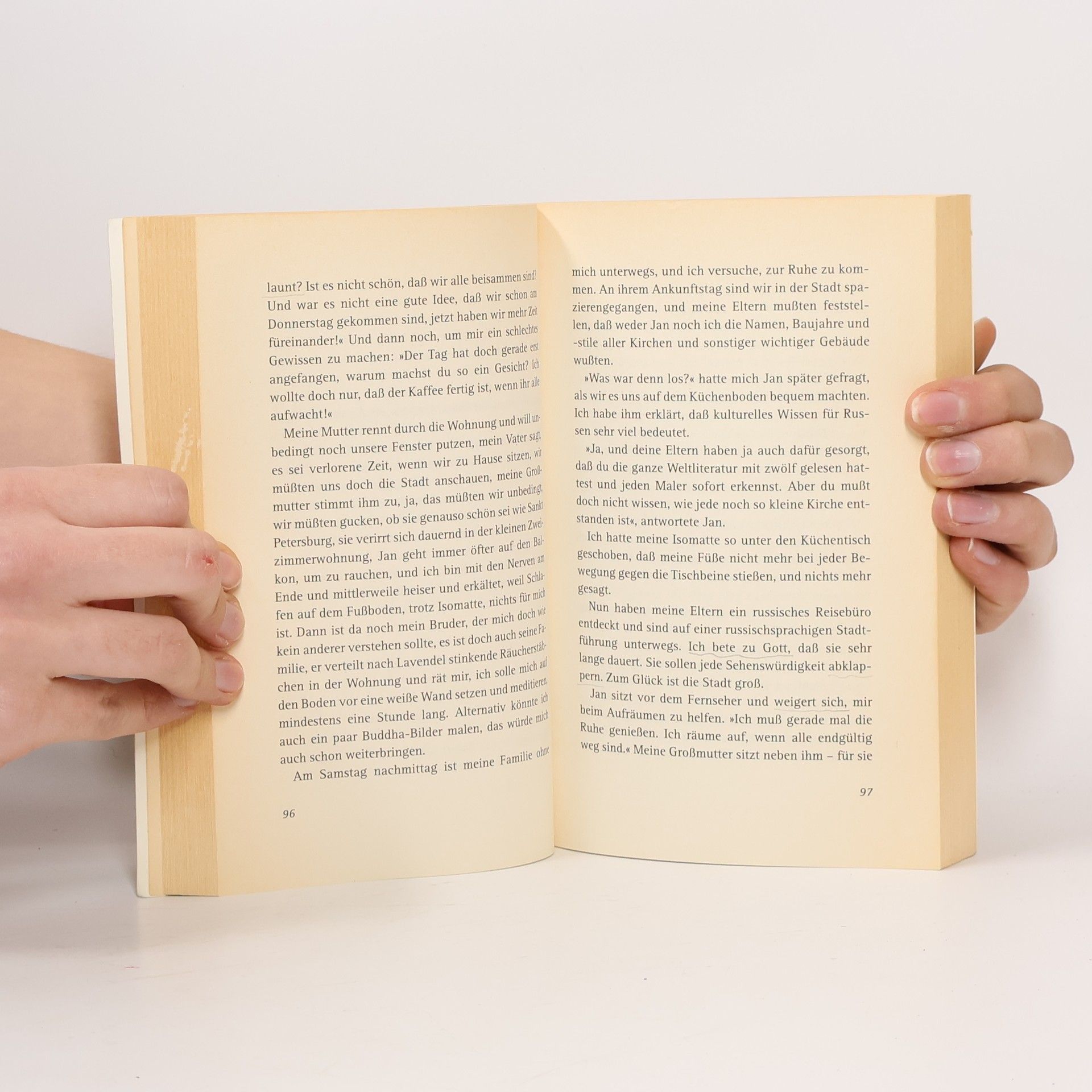 „Wenn ich traurig bin, kocht Jan Kartoffeln für mich. Zum Frühstück.“ Was tun, wenn man eine sehr emotionale, sehr russische Mutter hat, die mindestens einmal täglich anruft? Und eine wunderbare, aber schrecklich vergessliche Großmutter, die nur in ihrer Sankt Petersburger Vergangenheit lebt? Dazu noch einen reizenden Bruder, der gerade beschlossen hat, sich dem Buddhismus zuzuwenden? Eigentlich wäre Anja schon damit ausgelastet, in Deutschland Freund und Ex-Freund unter einen Hut zu bringen. Aber einer russischen Familie entkommt man nicht so leicht, auch wenn sie weit weg ist …